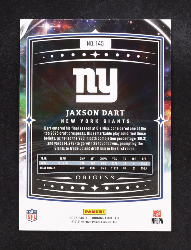 Jaxson Dart 2025 Panini Origins Rookie #145 RC