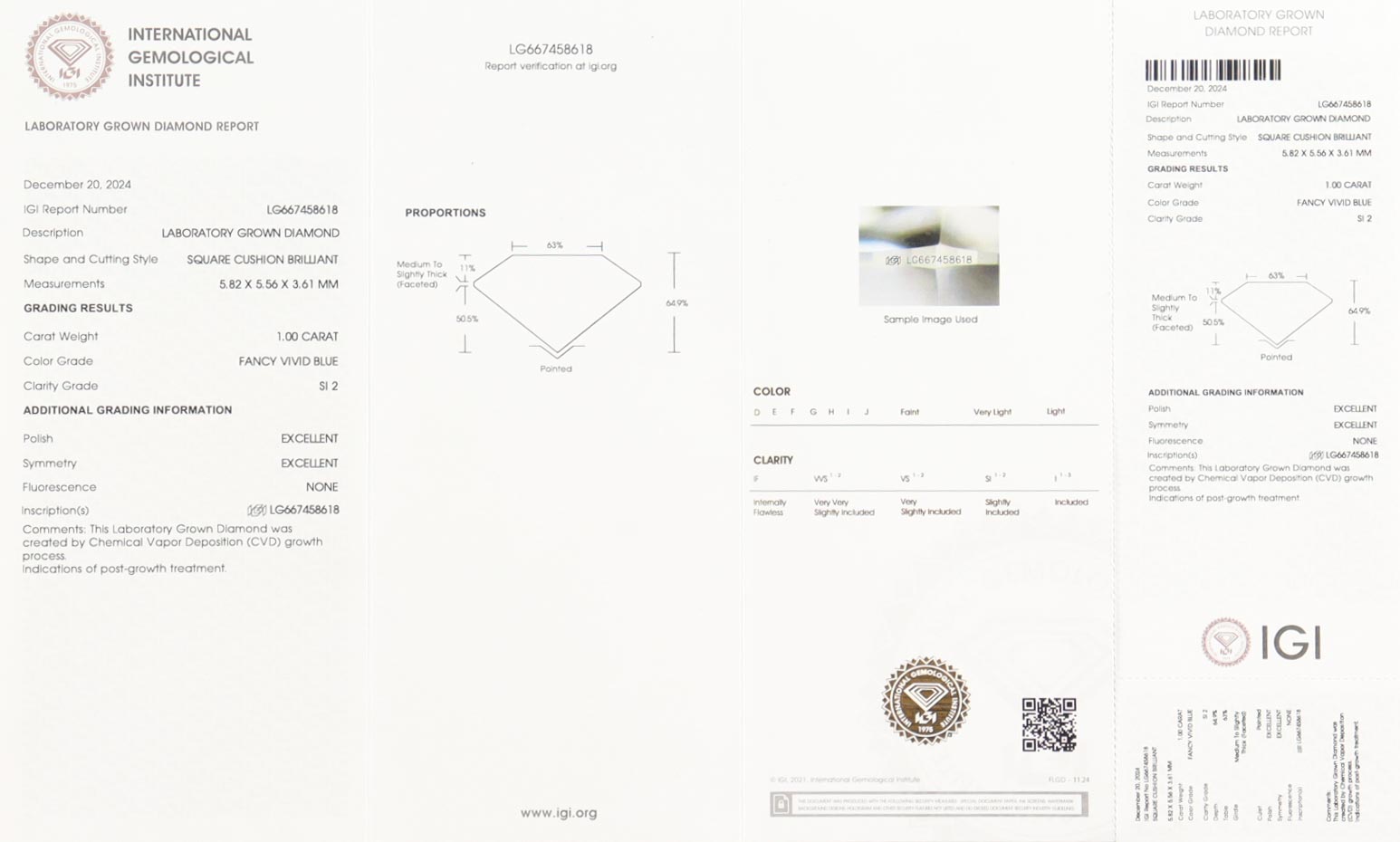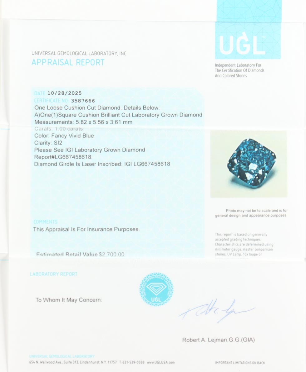 New 1.00 Carat Loose Lab Grown Fancy Vivid Blue Diamond SI2 | Estimated Retail Value: $2,700 (UGL & IGI)