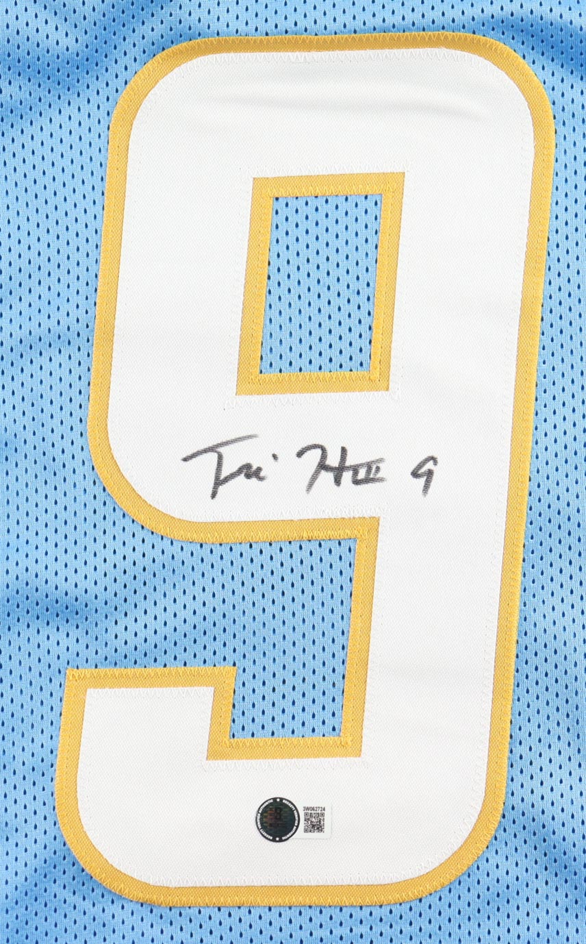 Custom jersey. Everything is sewn on, size XL. Hand-signed by Tre Harris.