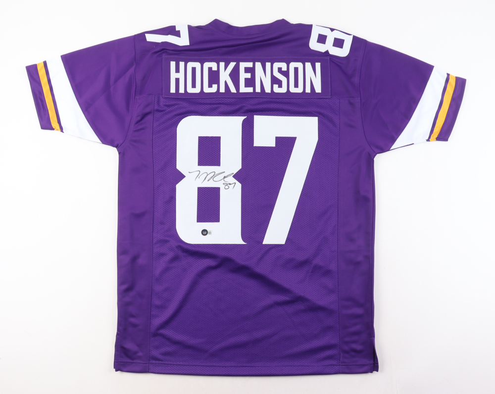 Custom jersey. Everything sewn on, size XL. Hand-signed by T. J. Hockenson.