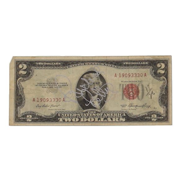 Richard Petty Signed 1953 United States $2 Two Dollar Legal Tender Note - Red Seal (JSA)