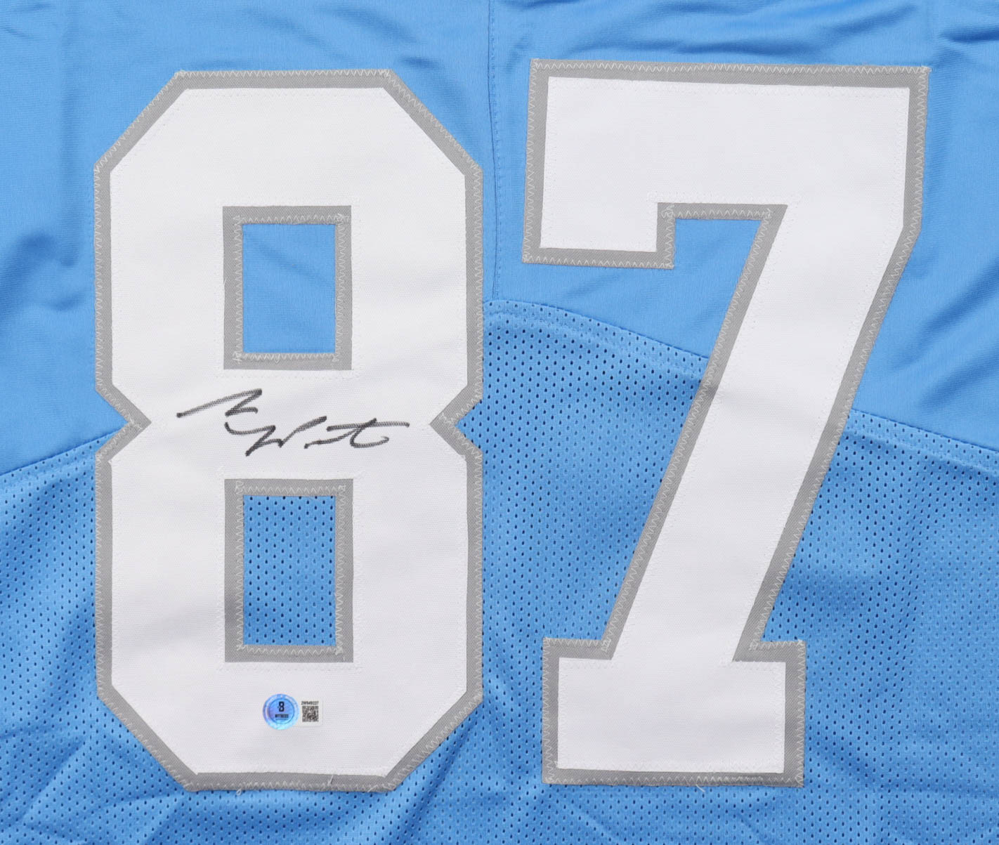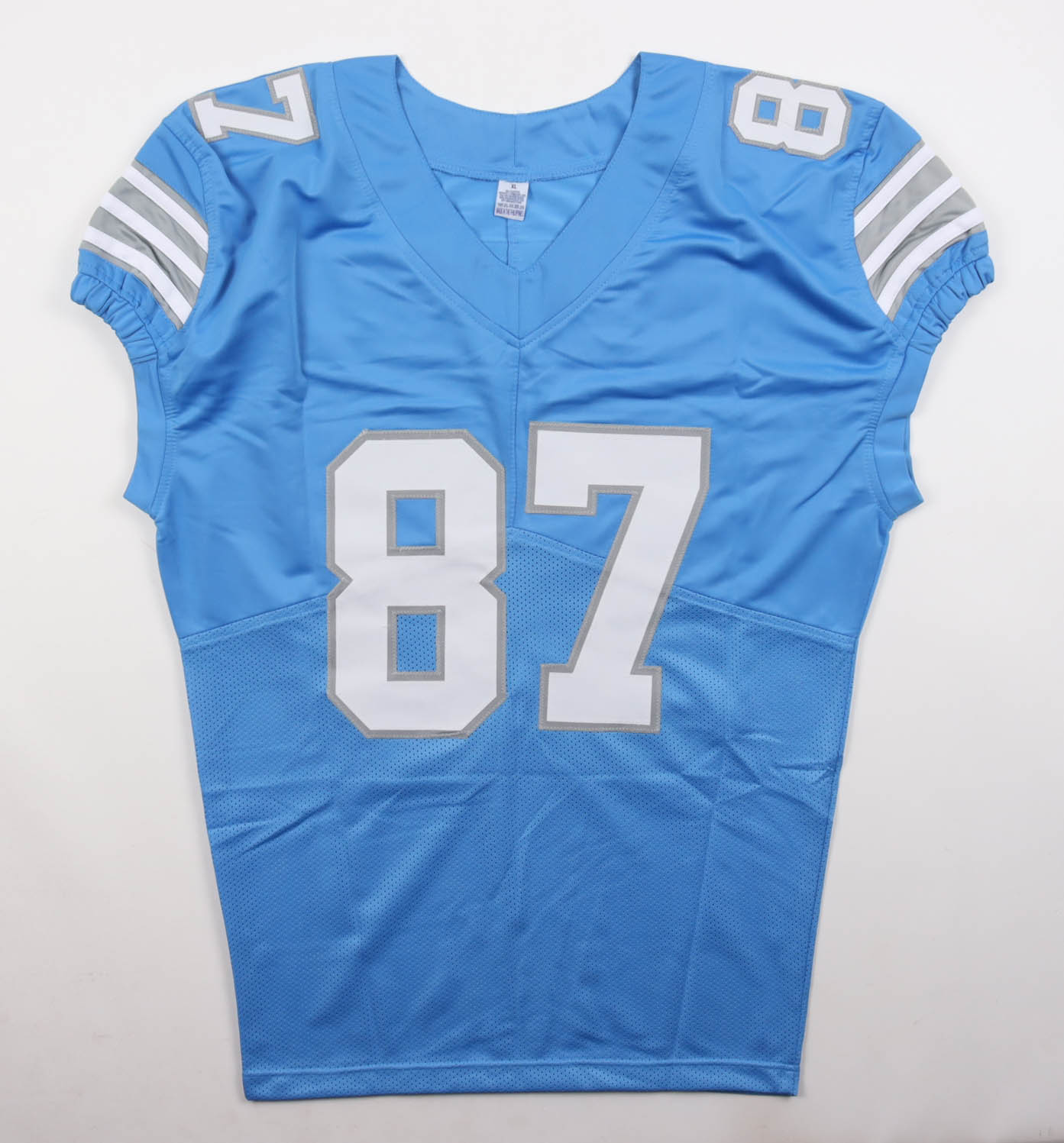 Custom jersey with everything sewn on, size XL. Hand-signed by Sam Laporta.