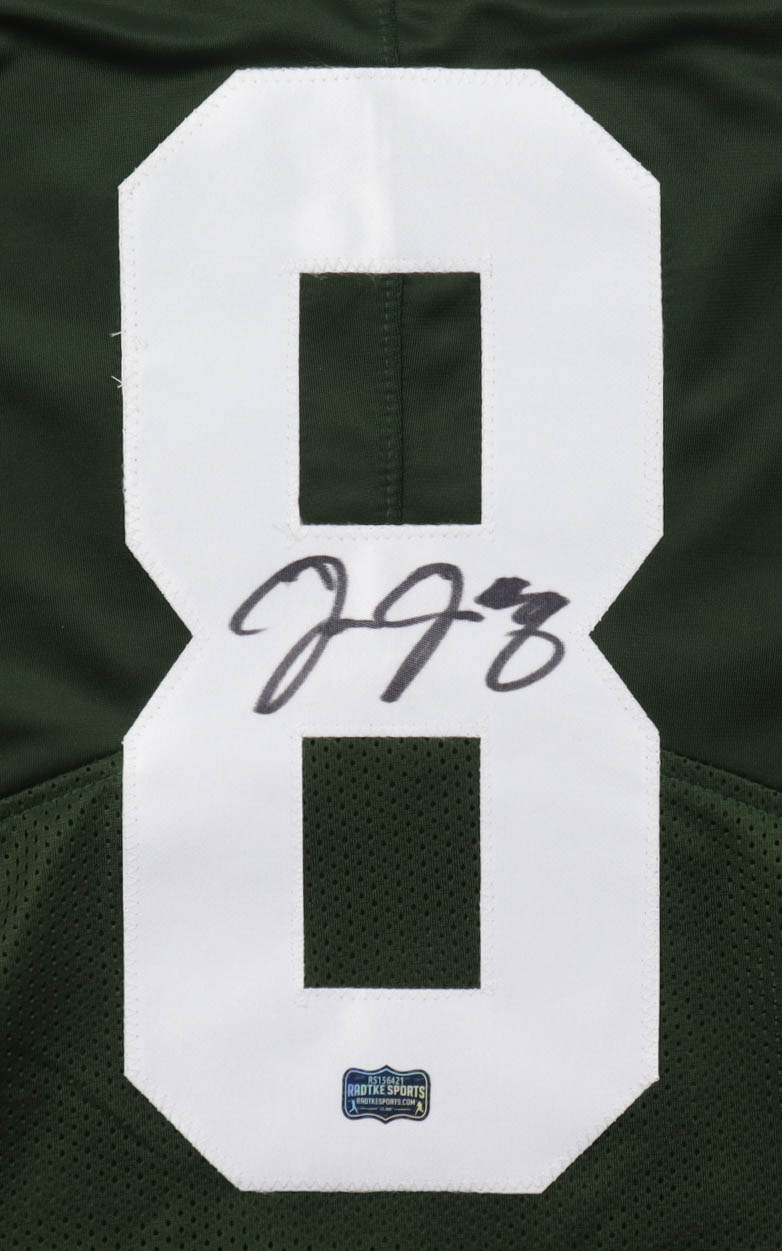Custom jersey with everything sewn on, size XL. Hand-signed by Josh Jacobs.