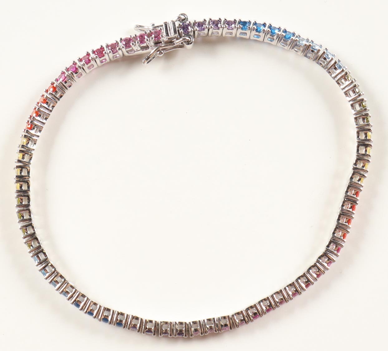 Ladies Multi Gemstone Bracelet. Bracelet Is Made Of Rhodium Over Sterling Silver. Measures 7 Inches In Length. Details Below: