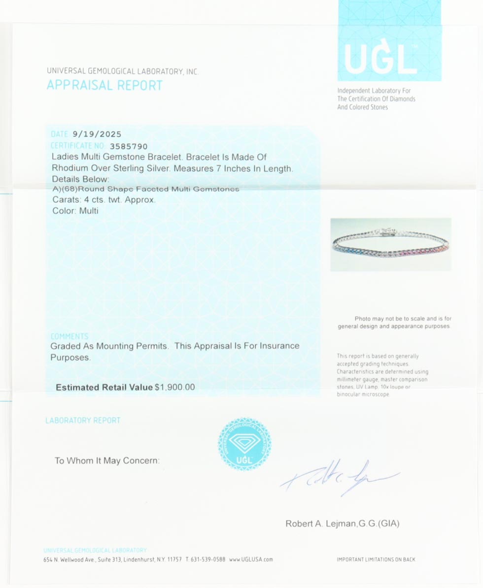 New 4 CTW Multi-Gemstone Bracelet | Estimate Retail Value $1,900 (UGL)