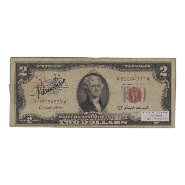 Ronald Wayne Signed 1953-A United States $2 Two Dollar Legal Tender Note - Red Seal (JSA)