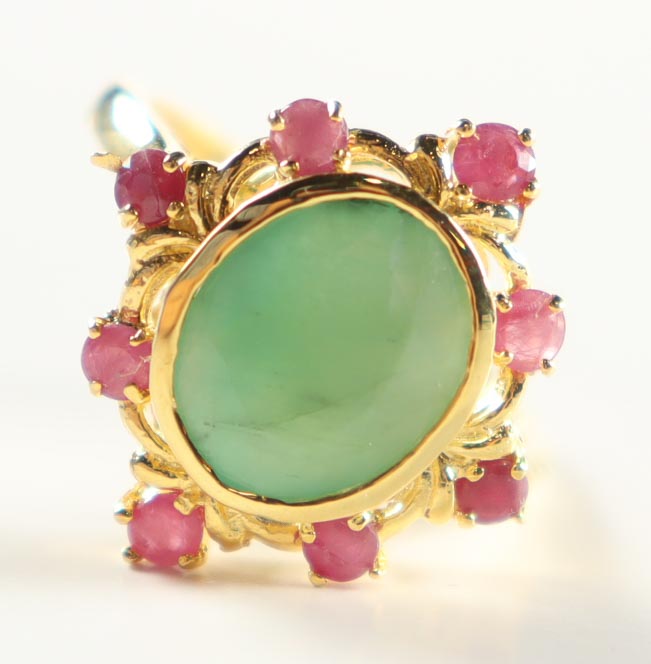 Ladies Emerald And Ruby Ring. Mounting Is Made Of Yellow Gold Over Sterling Silver. Ring Size 8. Details Below: