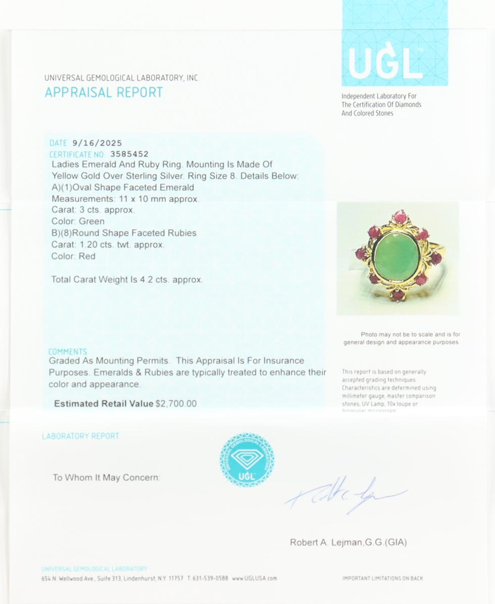 New 4.2 CTW Emerald & Ruby Ring | Estimated Retail Value: $2,700 (UGL)