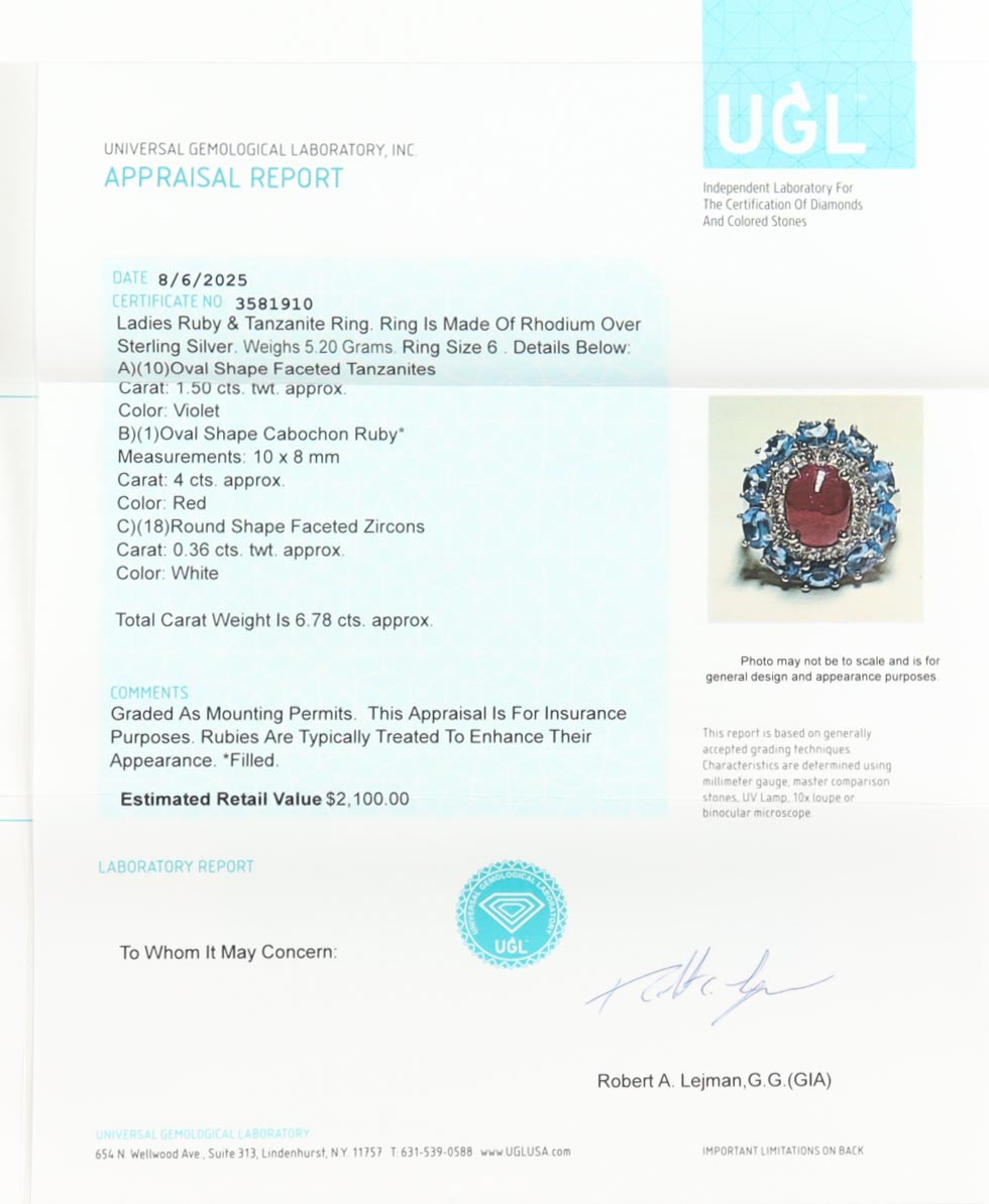 New 6.78 CTW Ruby & Tanzanite Ring | Estimated Retail Value: $2,100 (UGL)