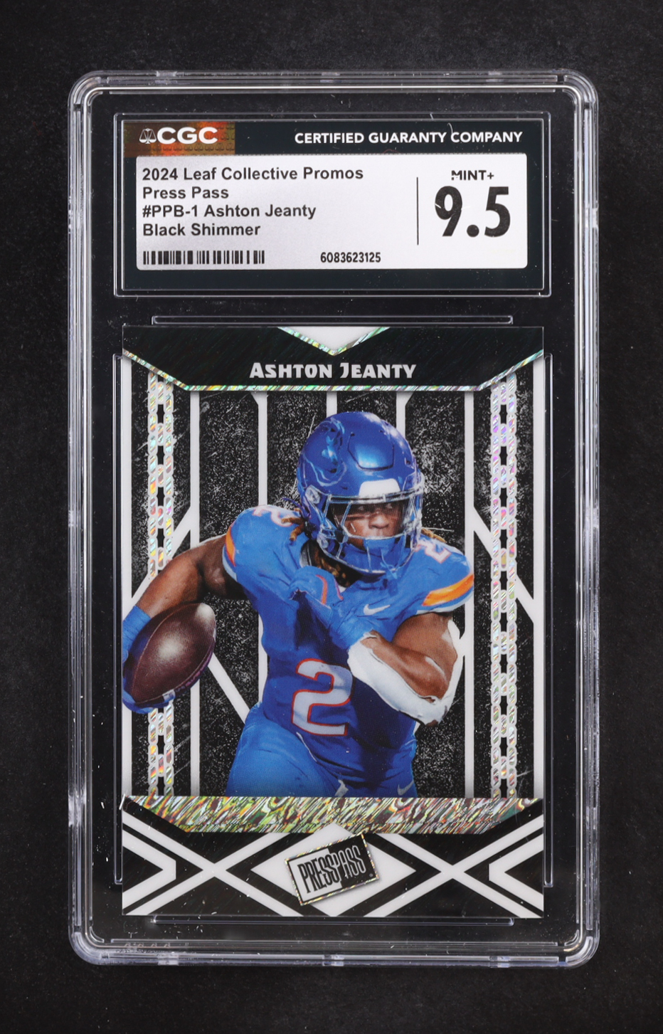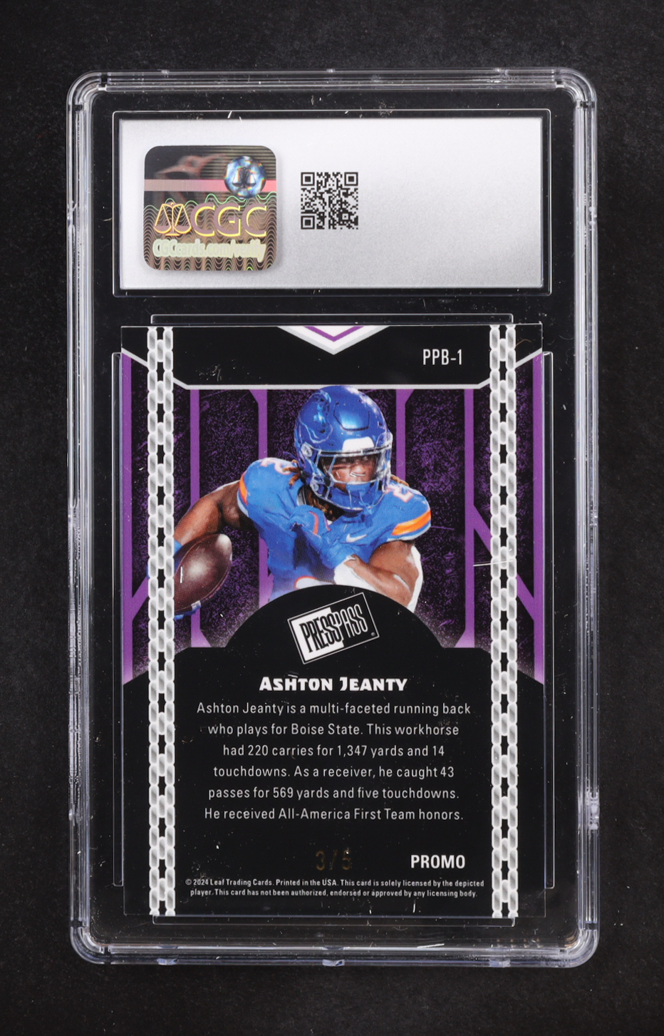 Ashton Jeanty 2024 Leaf Collective Promos Press Pass Black Shimmer #PPB-1 RC #3/5 (CGC 9.5)