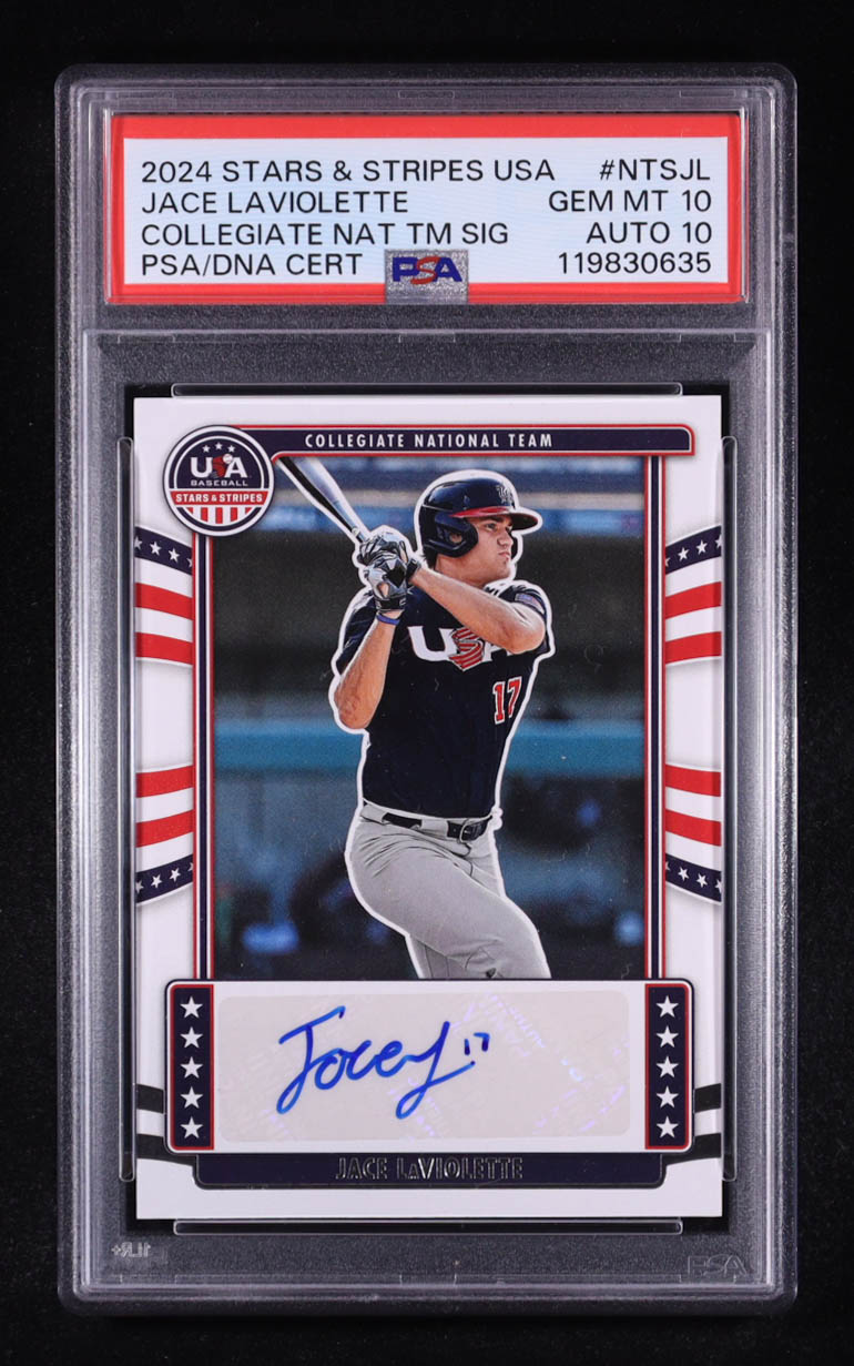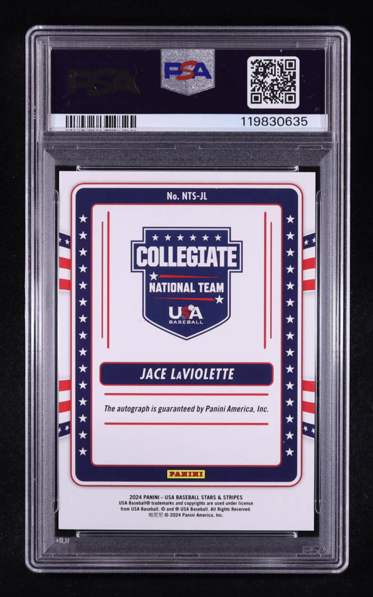 Jace LaViolette 2024 USA Baseball Stars and Stripes Collegiate National Team Signatures #27 RC (PSA 10 | Auto 10)