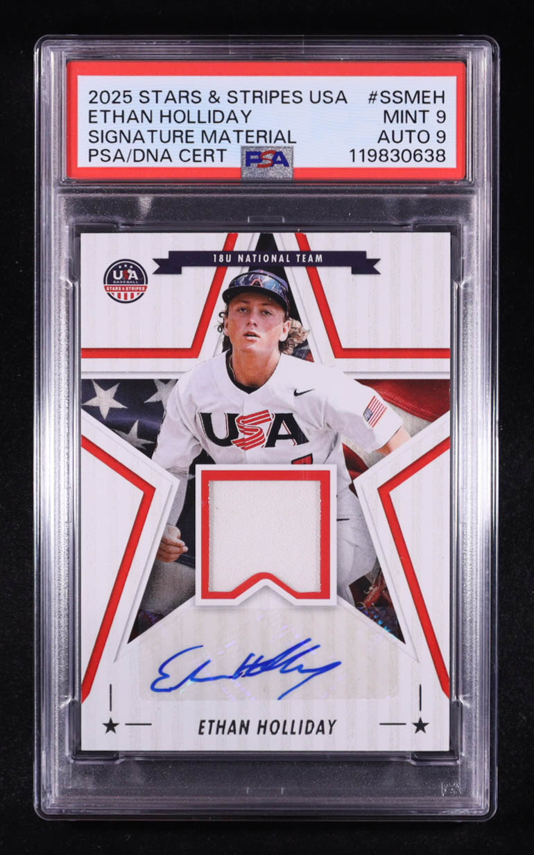 Ethan Holliday 2025 USA Baseball Stars and Stripes 18U National Team Signatures Materials #18 RC (PSA 9 | Auto 9)