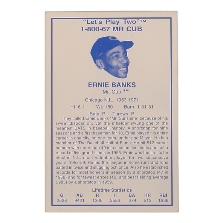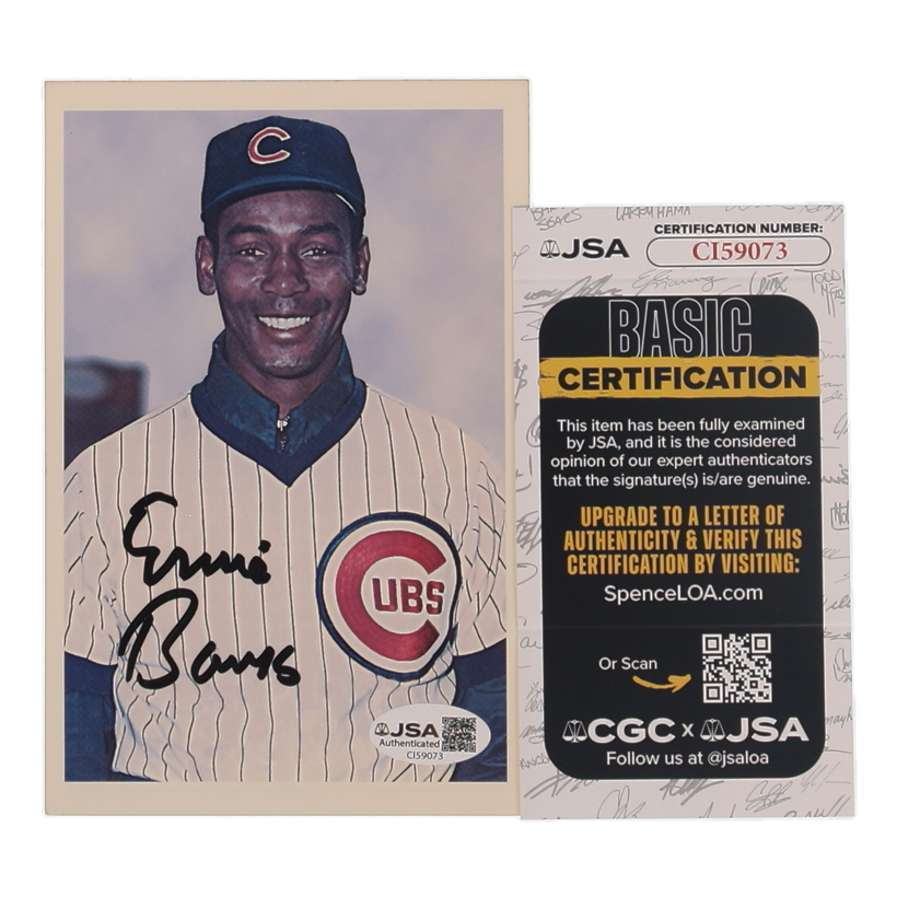 Photograph measures 5" x 7" in size. Hand-signed by Ernie Banks (d. 2015, Chicago Cubs, HOF)