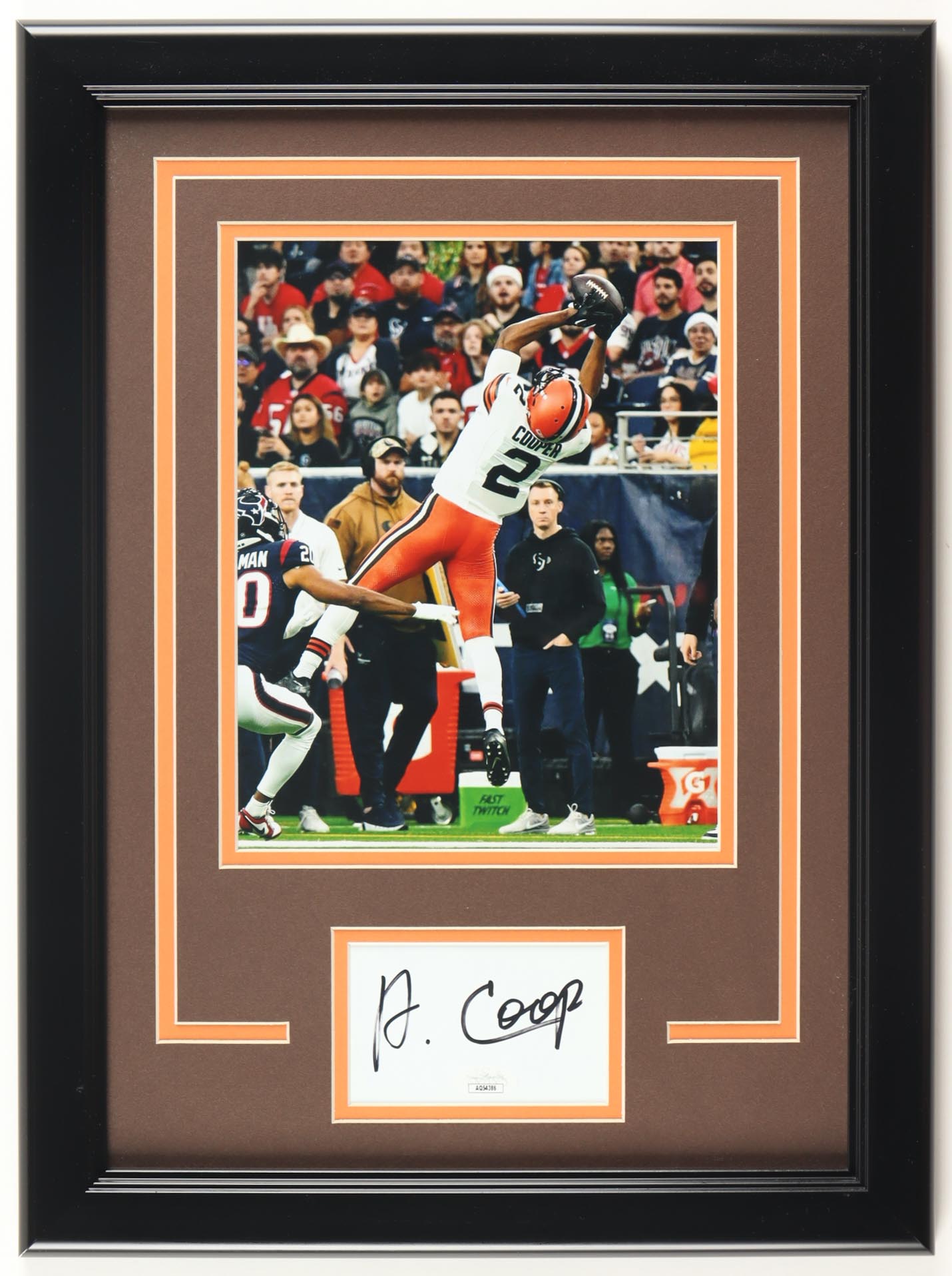Custom framed display measures approximately 14" x 19" in size and features a cut that has been hand-signed by Amari Cooper (Cleveland Browns).