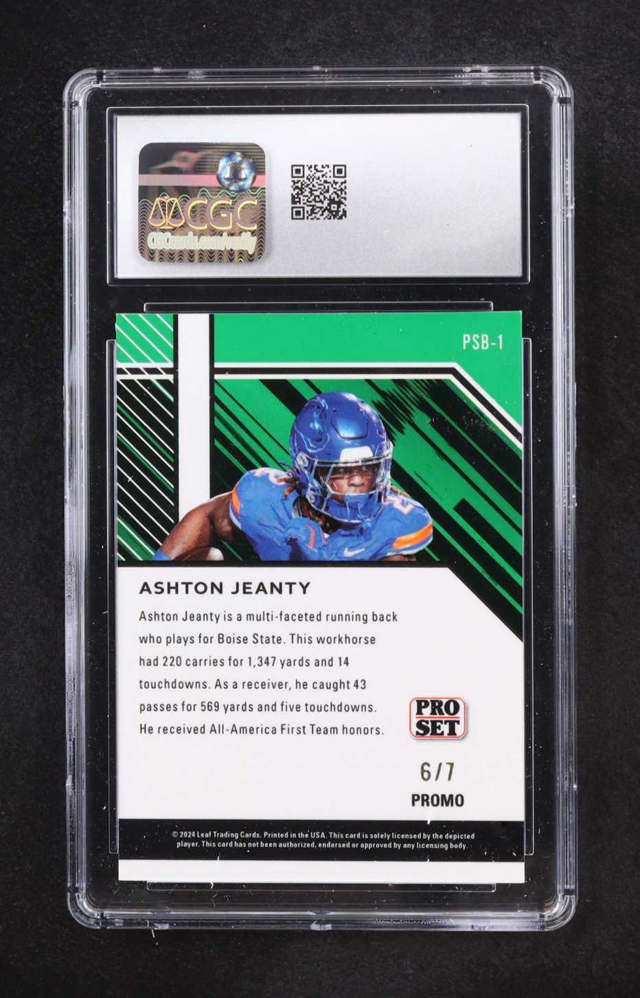Ashton Jeanty 2024 Leaf Collective Promos Pro Set Silver Shimmer #PSB-1 RC #6/7 (CGC 9)
