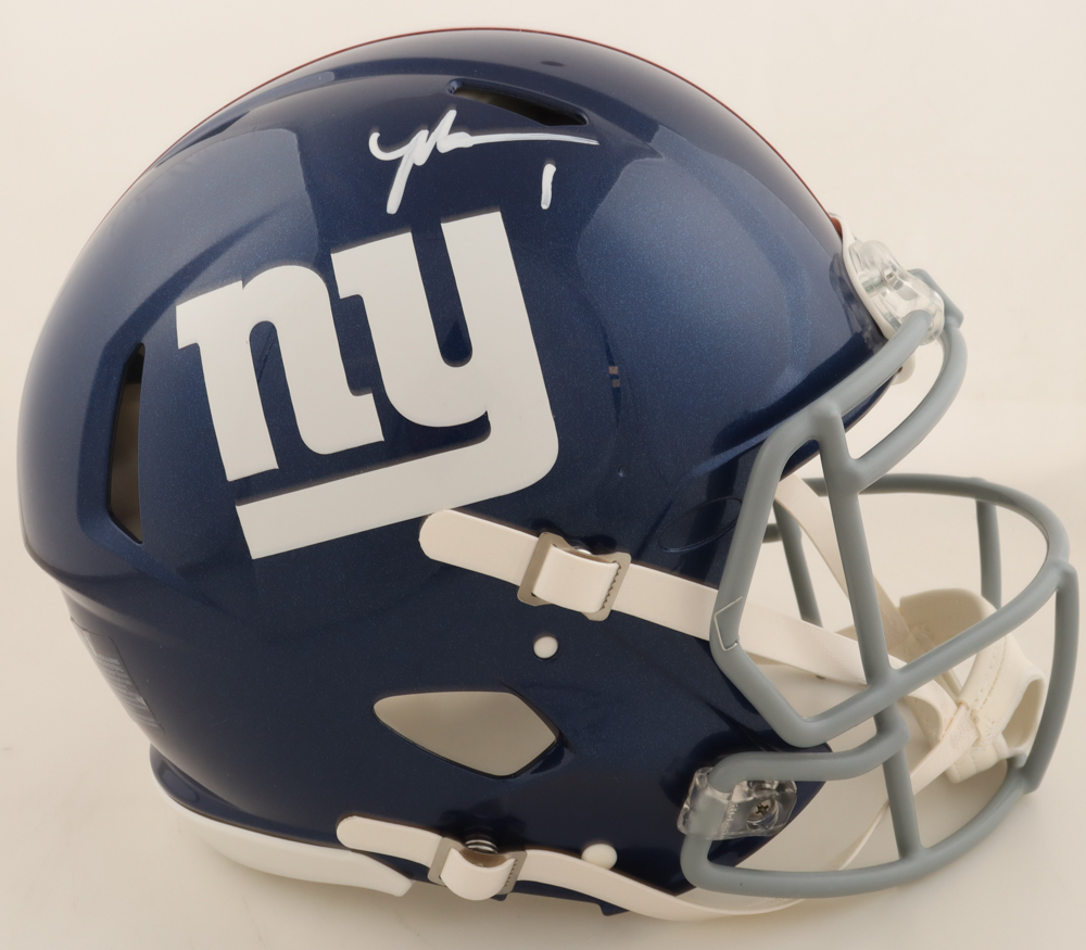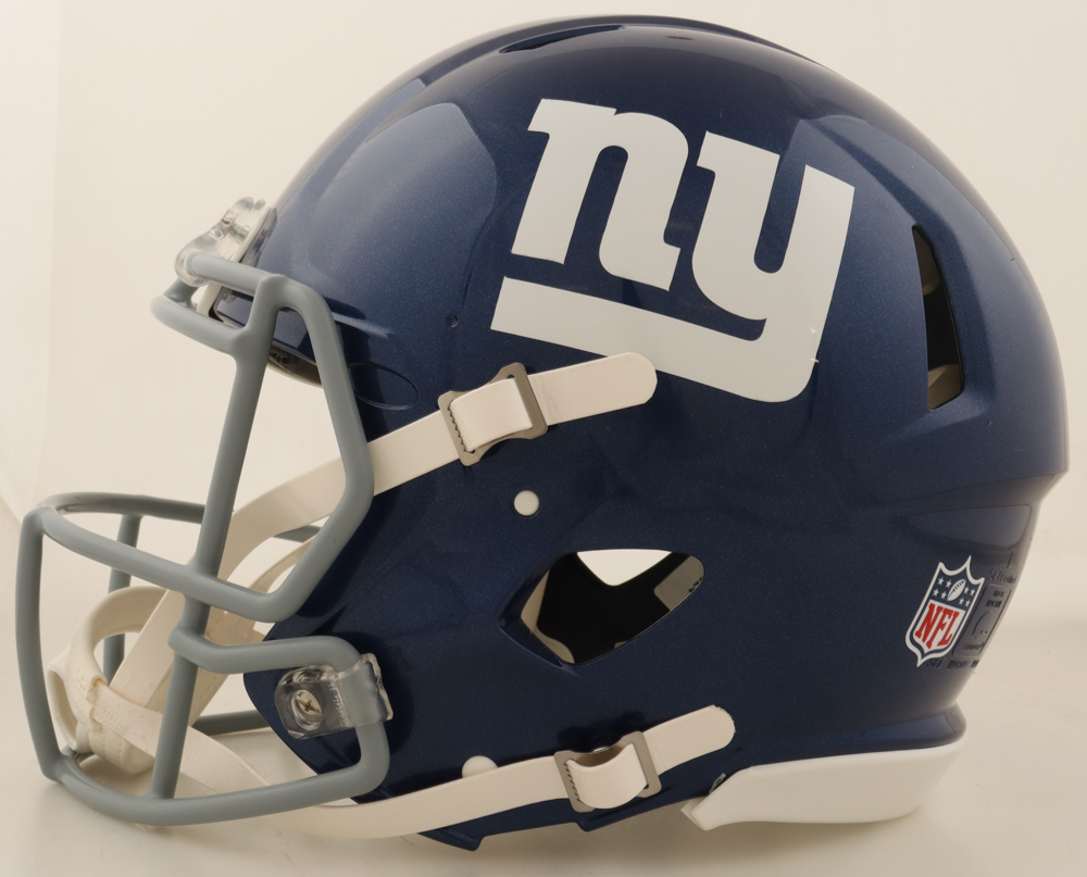 Riddell New York Giants full-size Authentic On-Field speed helmet has been hand-signed by Malik Nabers.