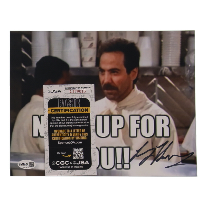 Photo measures 8" x 10" in size and has been hand-signed by Larry Thomas (The Soup Nazi).