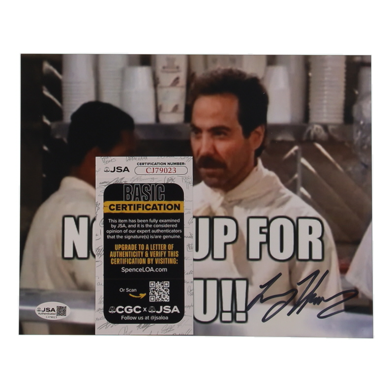 Photo measures 8" x 10" in size and has been hand-signed by Larry Thomas (The Soup Nazi).