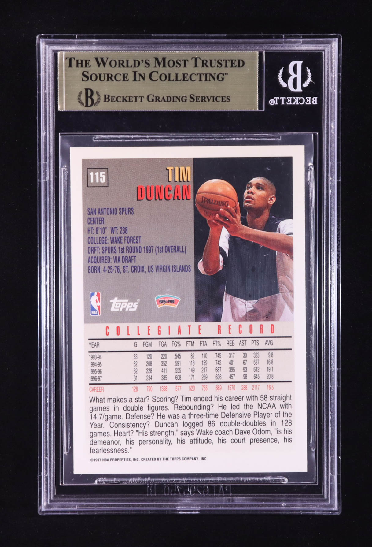 Tim Duncan 1997-98 Topps #115 RC (BGS 9.5)