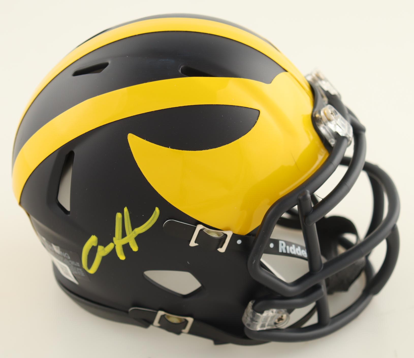 Riddell Michigan Wolverines Speed mini helmet has been hand-signed by Aidan Hutchinson.