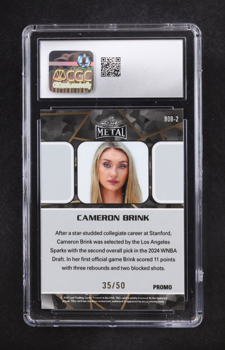 Cameron Brink 2024 Leaf Metal Collective Promos '90 Green Shimmer #90B-2 RC #35/50 (CGC 10)