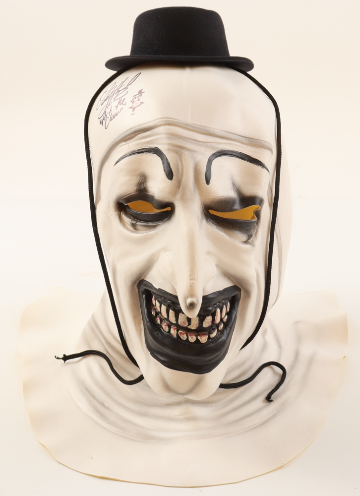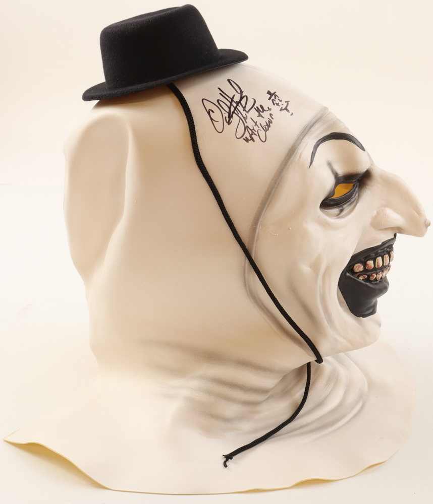 Art the clown Halloween mask. Hand-signed and inscribed by David Howard Thornton. See photos for more details on the condition of the mask.