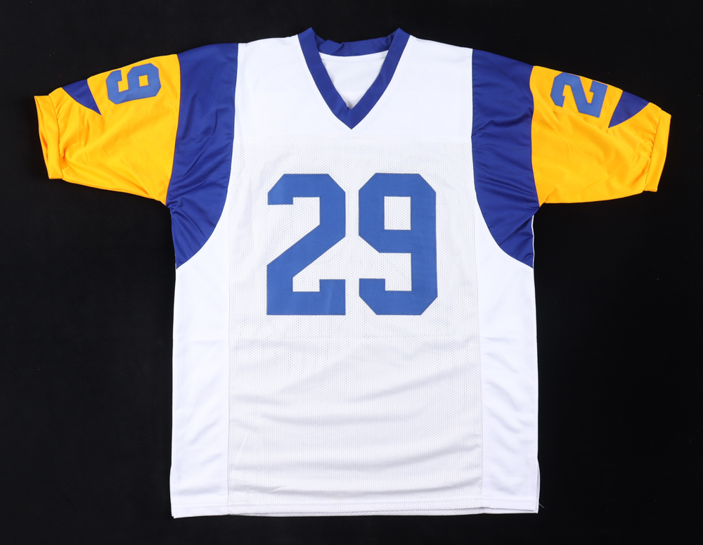 Custom jersey with everything sewn on, size XL. Has been hand-signed and inscribed by Eric Dickerson (HOF).