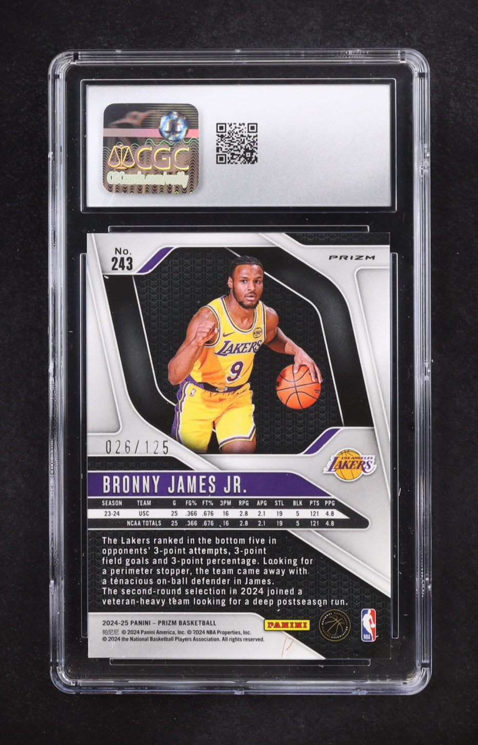 Bronny James 2024-25 Panini Prizm Blue Ice #243 RC #026/125 (CGC 9.5)