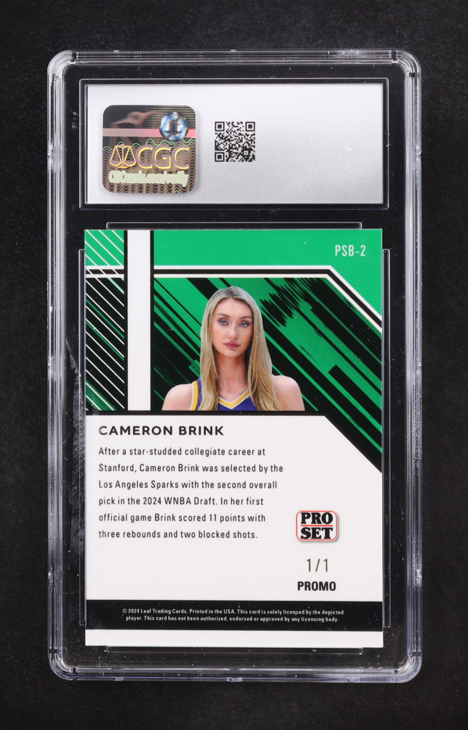 Cameron Brink 2024 Leaf Collective Promos Pro Set Super Prismatic Gold #PSB-2 RC #1/1 (CGC 9)