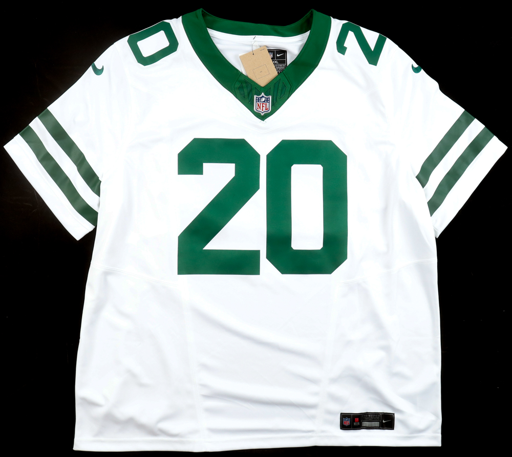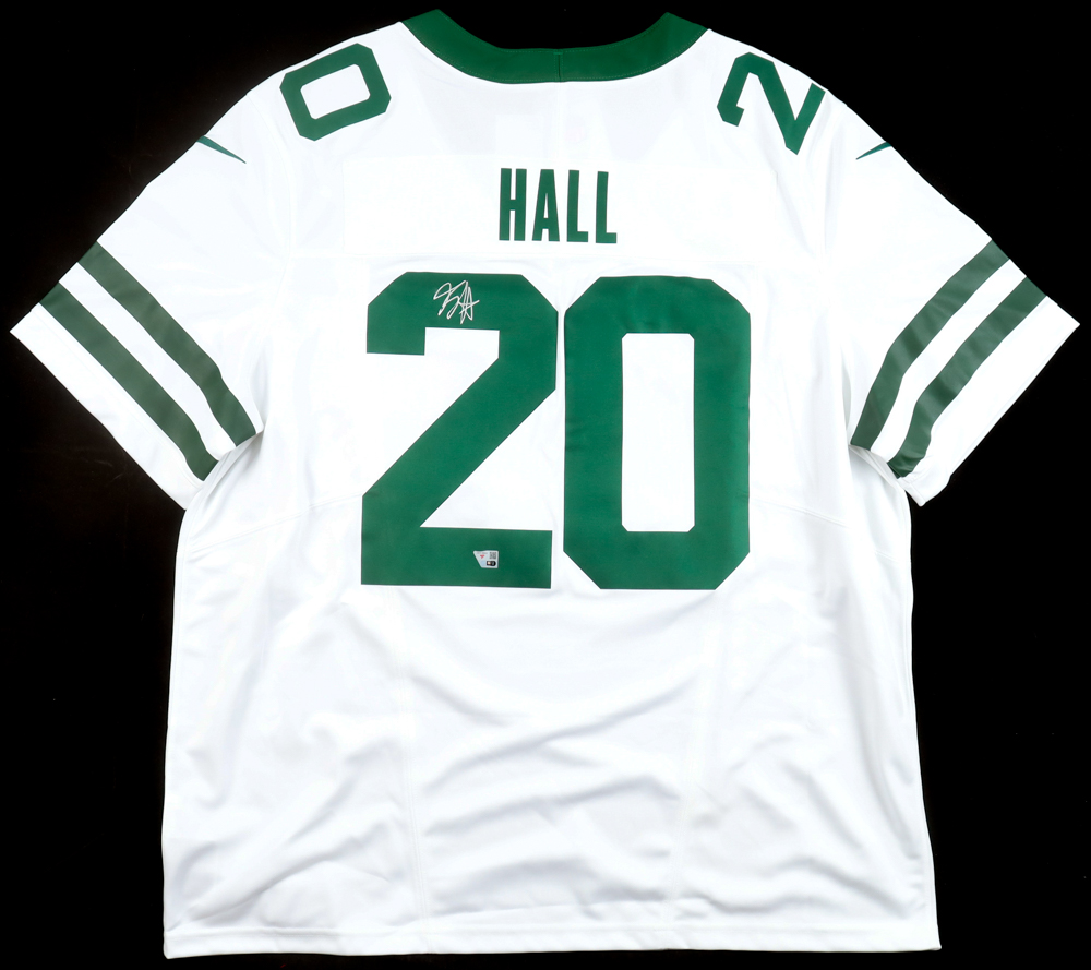 Nike jersey with everything pressed on, size XXL. Hand-signed by Breece Hall (New York Jets).