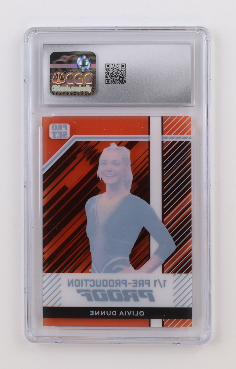 Olivia Dunne 2024 Leaf Collective Pro Set Autographs Unsigned Orange Pre-Production Proof #PSA-OD1 RC #1/1 (CGC 9)