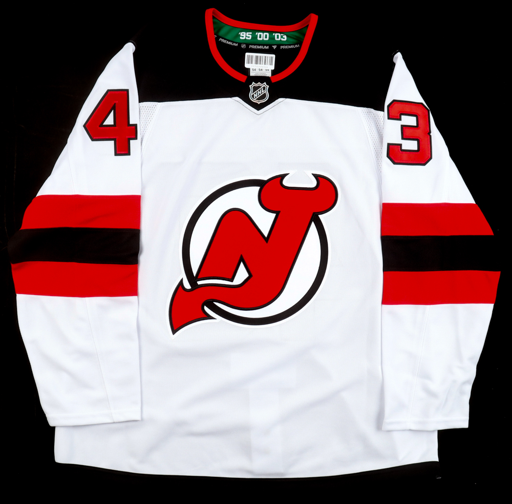 Fanatics jersey with everything sewn on, size 54. Hand-signed by Luke Hughes (New Jersey Devils). Please note, there are stains throughout the jersey.