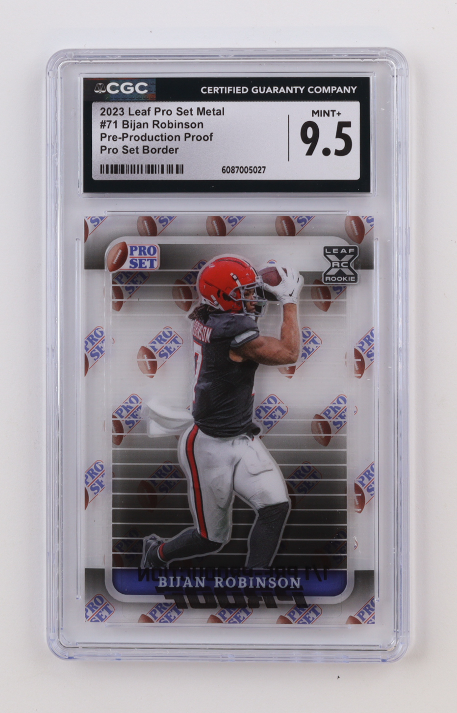 Bijan Robinson 2023 Leaf Pro Set Metal Retro Pro Set Border Mojo Pre-Production Proof #71 RC #1/ 1 (CGC 9.5)