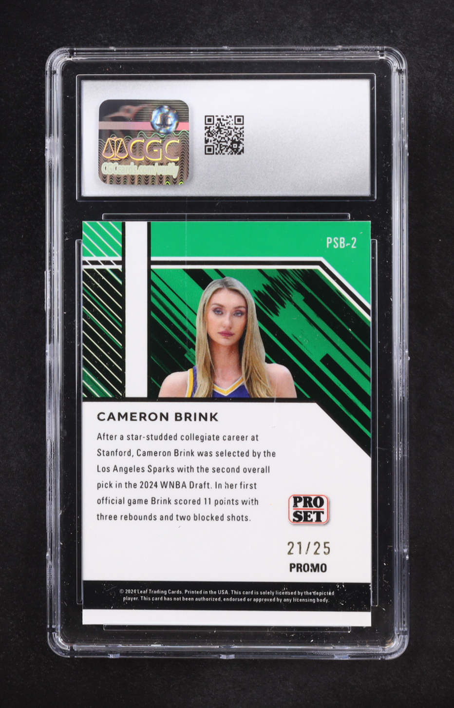 Cameron Brink 2024 Leaf Collective Promos Pro Set Black Shimmer #PSB-2 RC #21/25 (CGC 10)