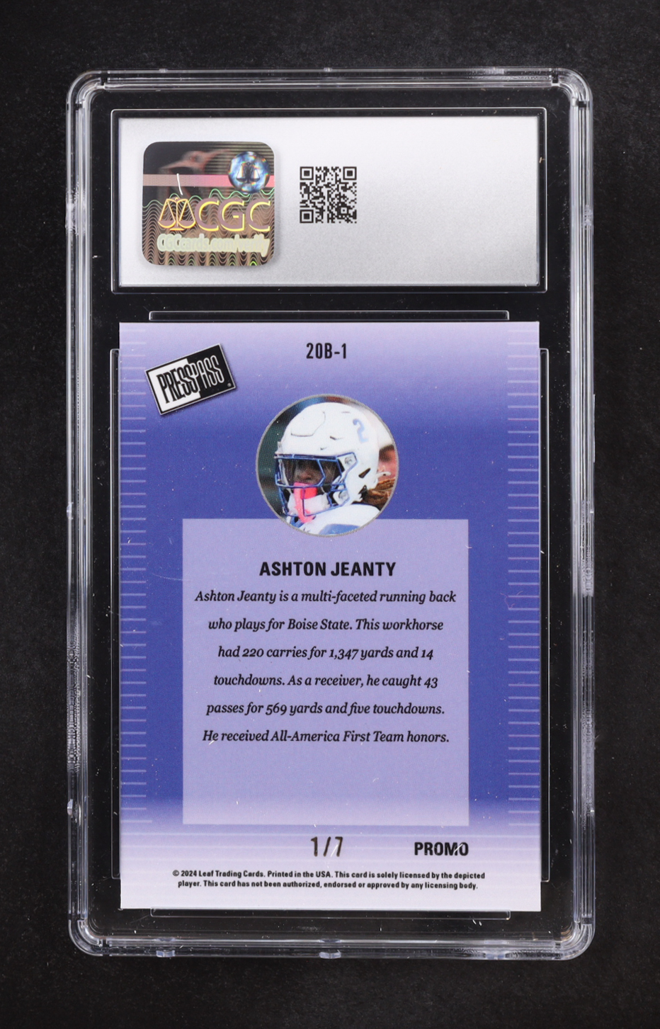 Ashton Jeanty 2024 Leaf Collective Promos '00 Press Pass Black Shimmer #20B-1 RC #1/7 (CGC 9.5)