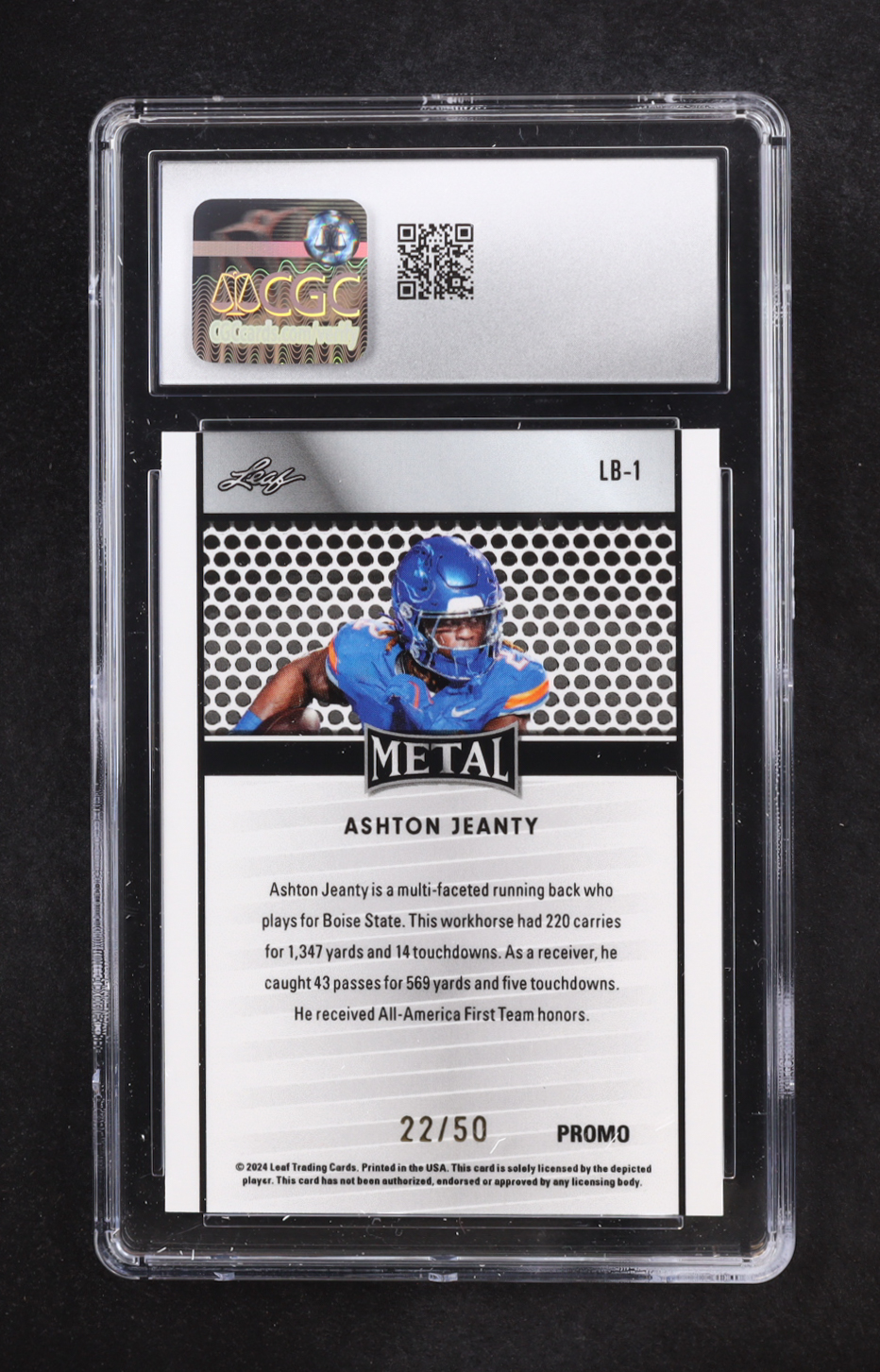 Ashton Jeanty 2024 Leaf Metal Collective Promos Green Shimmer #LB-1 RC #22/50 (CGC 10)