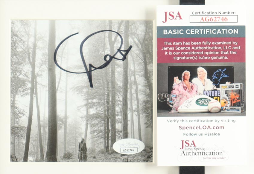 Custom frame measures approximately 8" x 13.5" in size. Features a "Folklore" CD insert that has been hand-signed by Taylor Swift and includes the disc as shown.