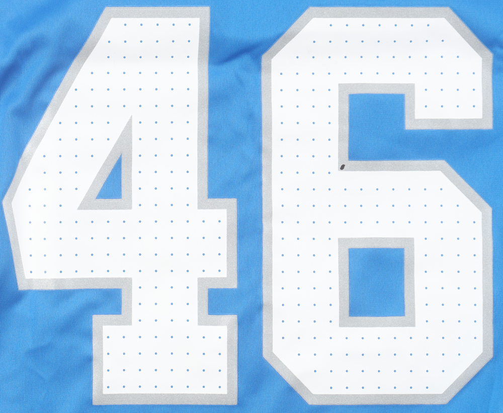 Nike jersey with everything pressed on, size L. Hand-signed by Jack Campbell. Please note, there is residue and scuffing on both sleeves and on the reverse number.
