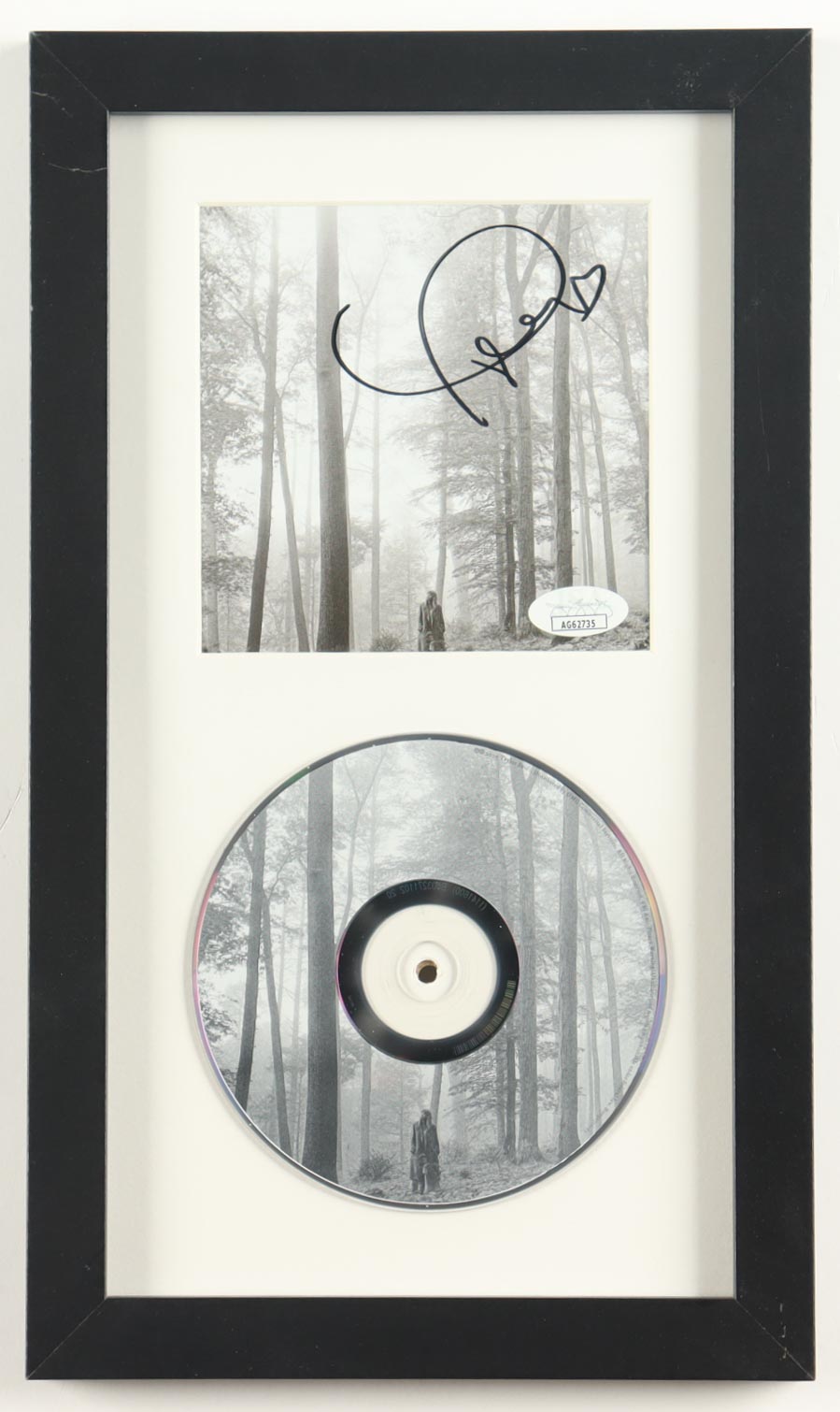Custom frame measures approximately 8" x 13.5" in size. Features a "Folklore" CD insert that has been hand-signed by Taylor Swift and includes the disc as shown.