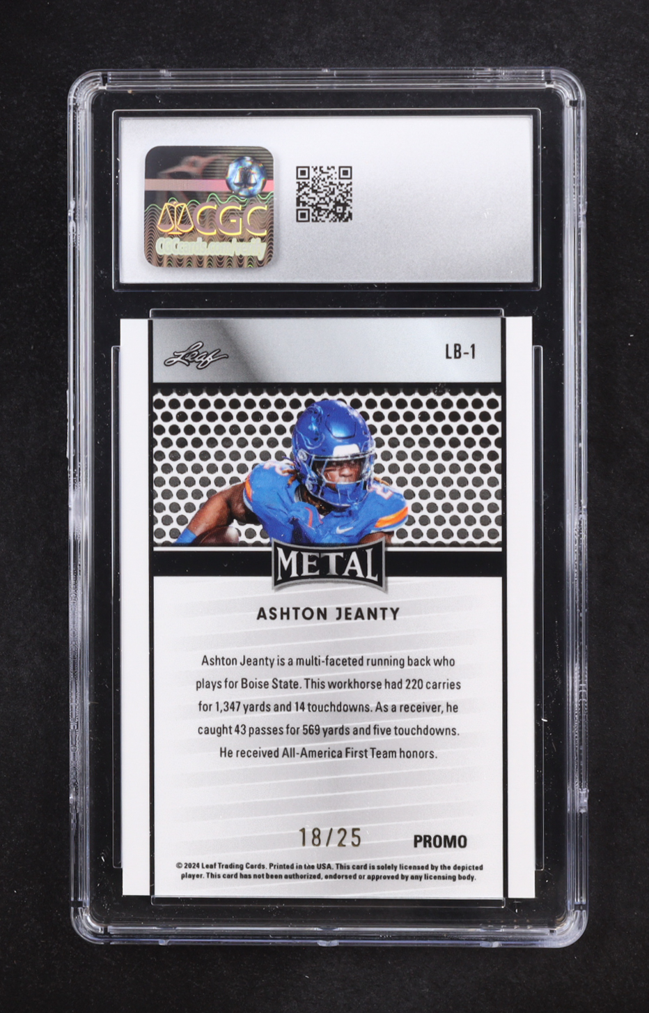 Ashton Jeanty 2024 Leaf Metal Collective Promos Black Shimmer #LB-1 RC #18/25 (CGC 9)