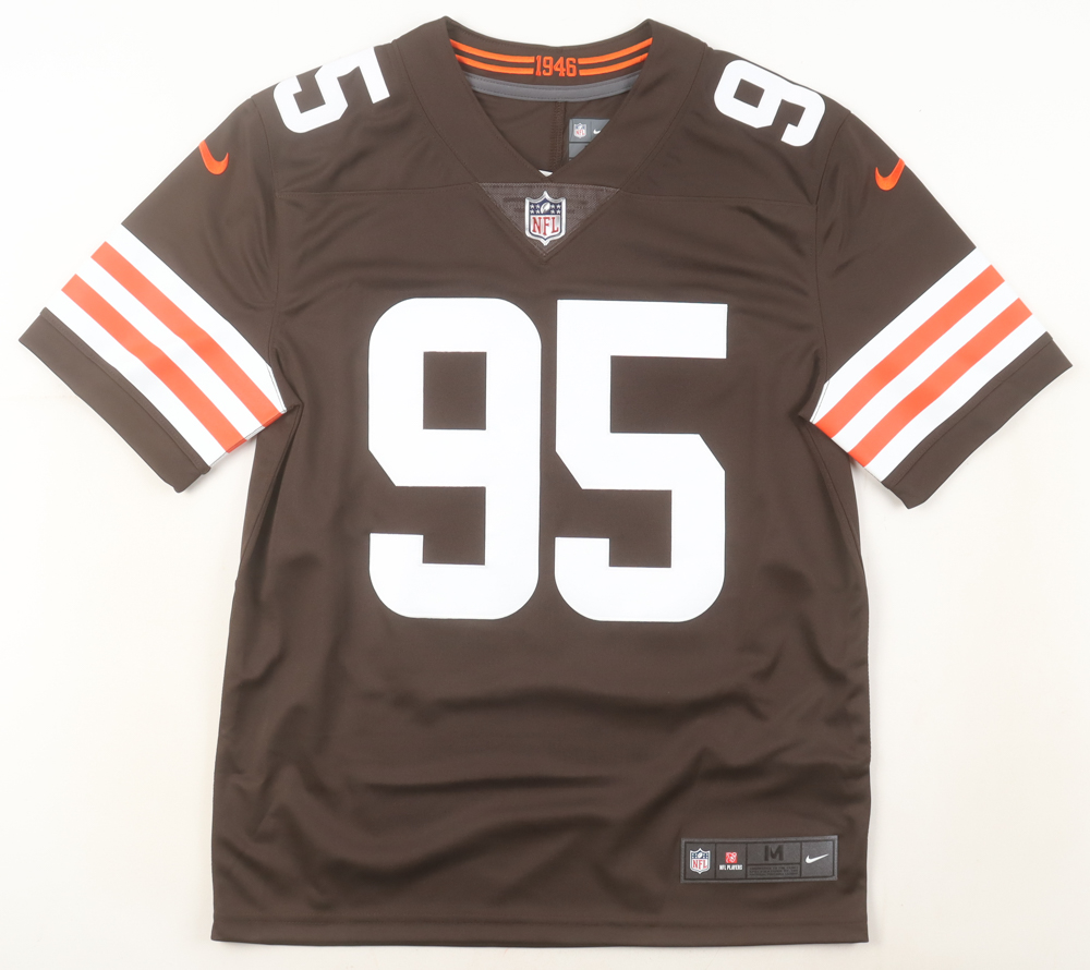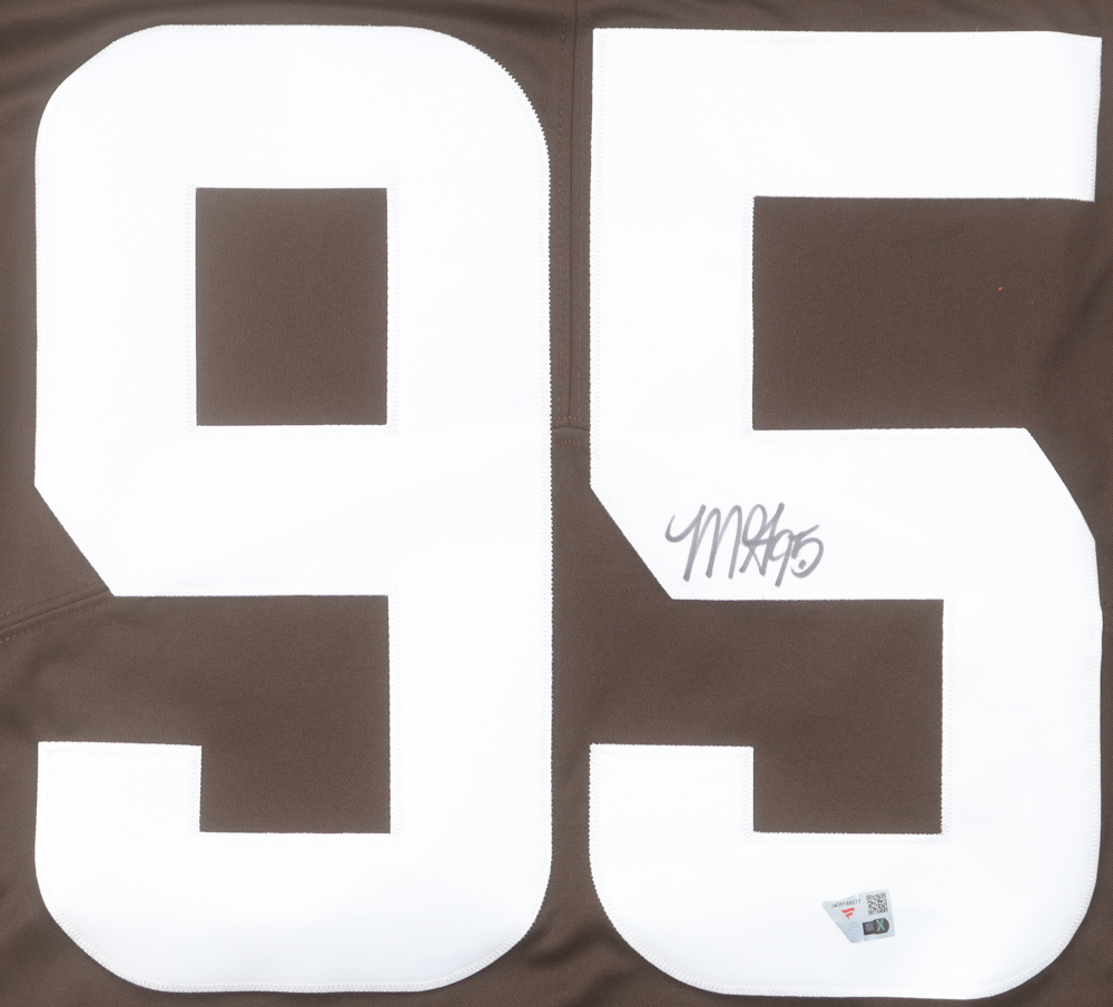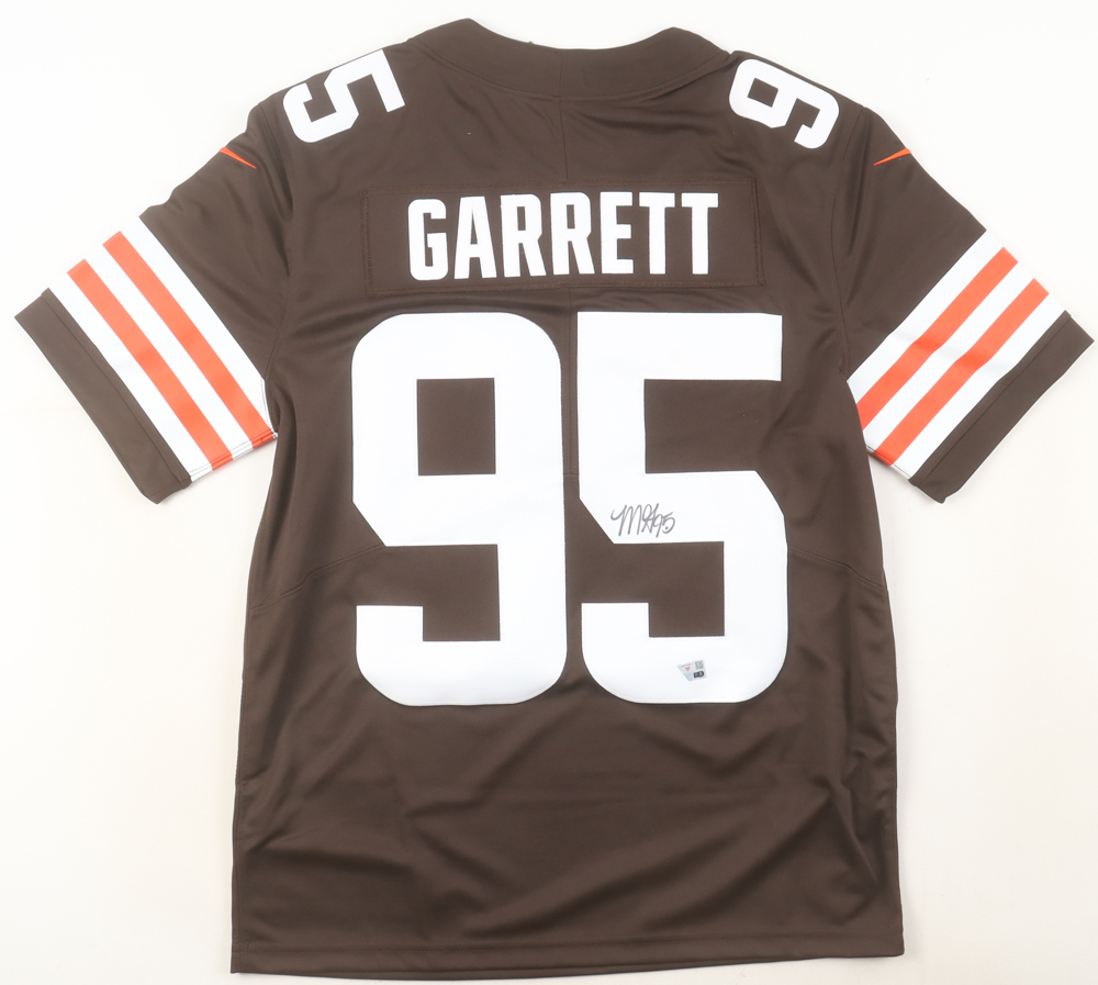 Nike jersey with everything sewn on, size M. Hand-signed by Myles Garrett (Cleveland Browns).