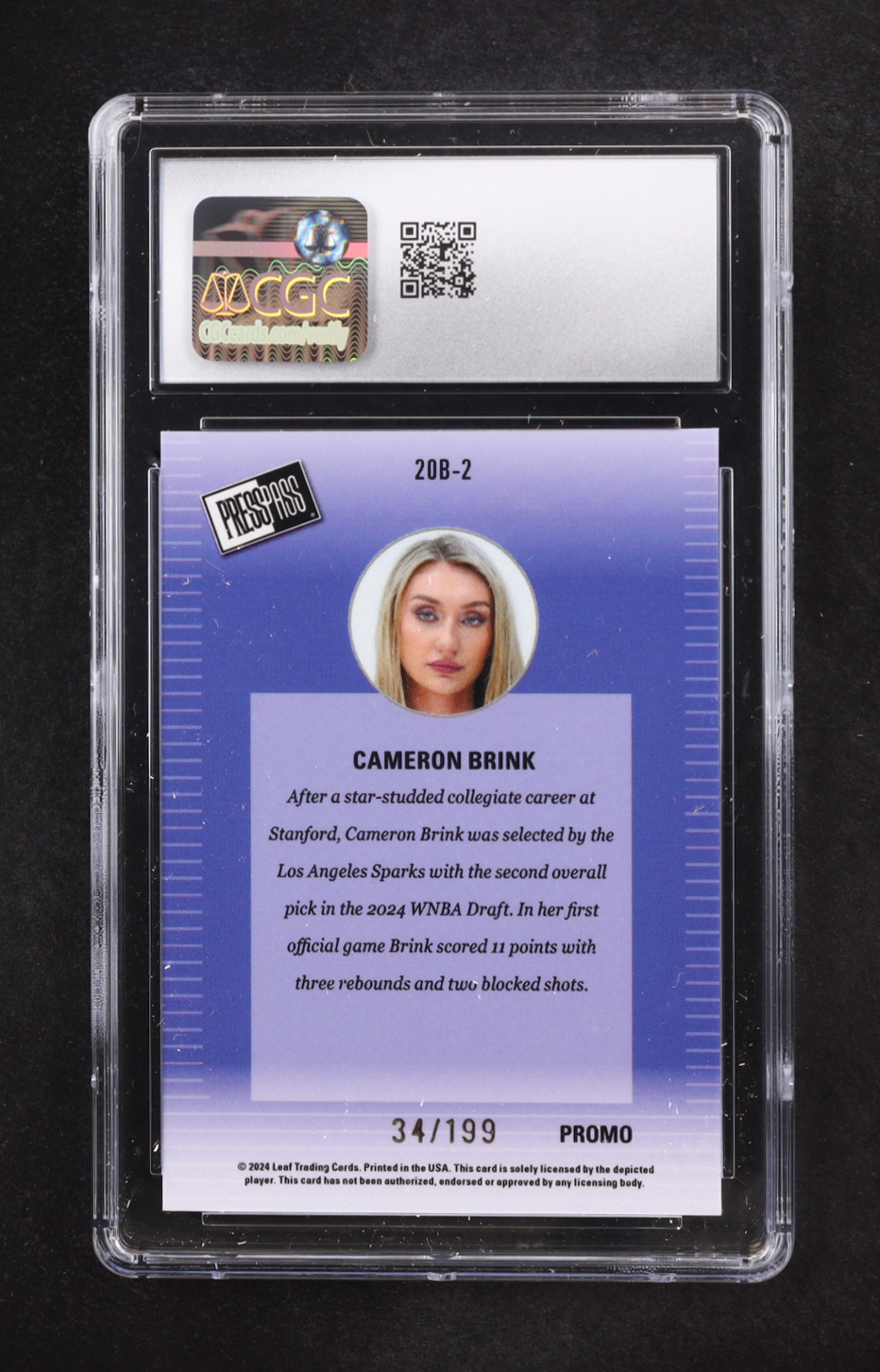 Cameron Brink 2024 Leaf Collective Promos '00 Press Pass Purple Shimmer #20B-2 RC #34/199 (CGC 10)