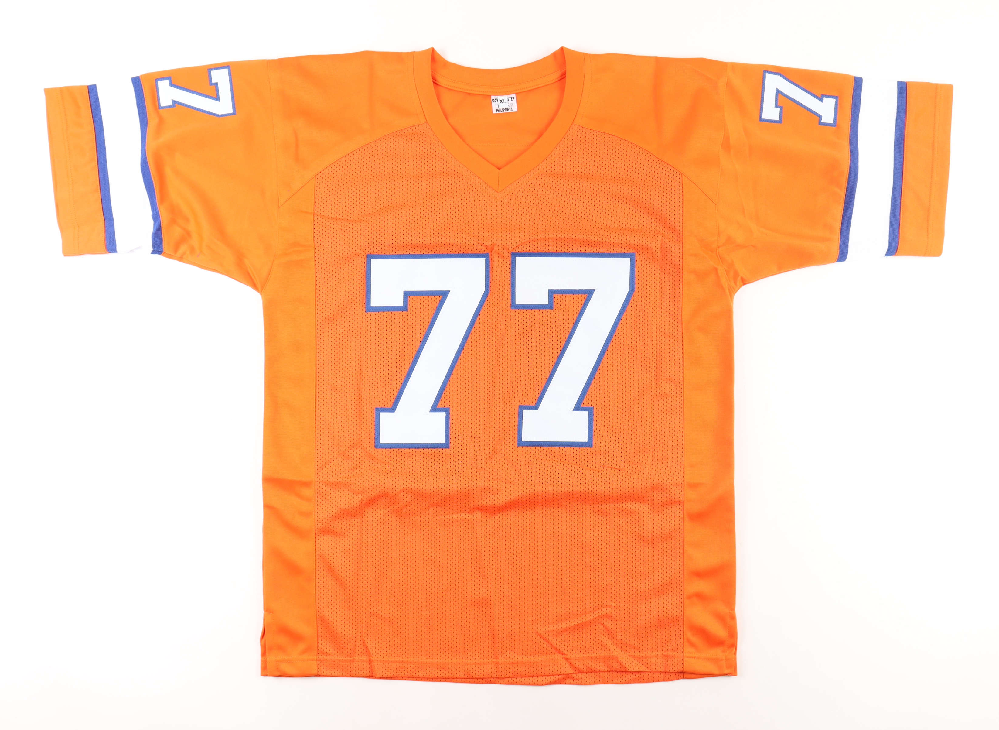 Custom jersey with everything sewn on, size XL. Hand-signed and inscribed by Karl Mecklenburg.