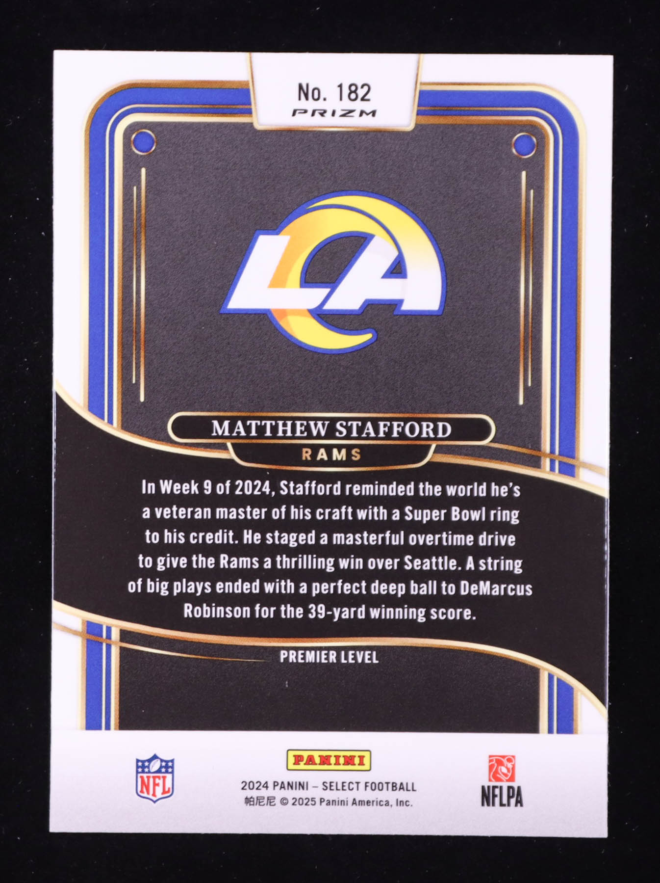 Matthew Stafford 2024 Select Prizm Zebra Shock #182