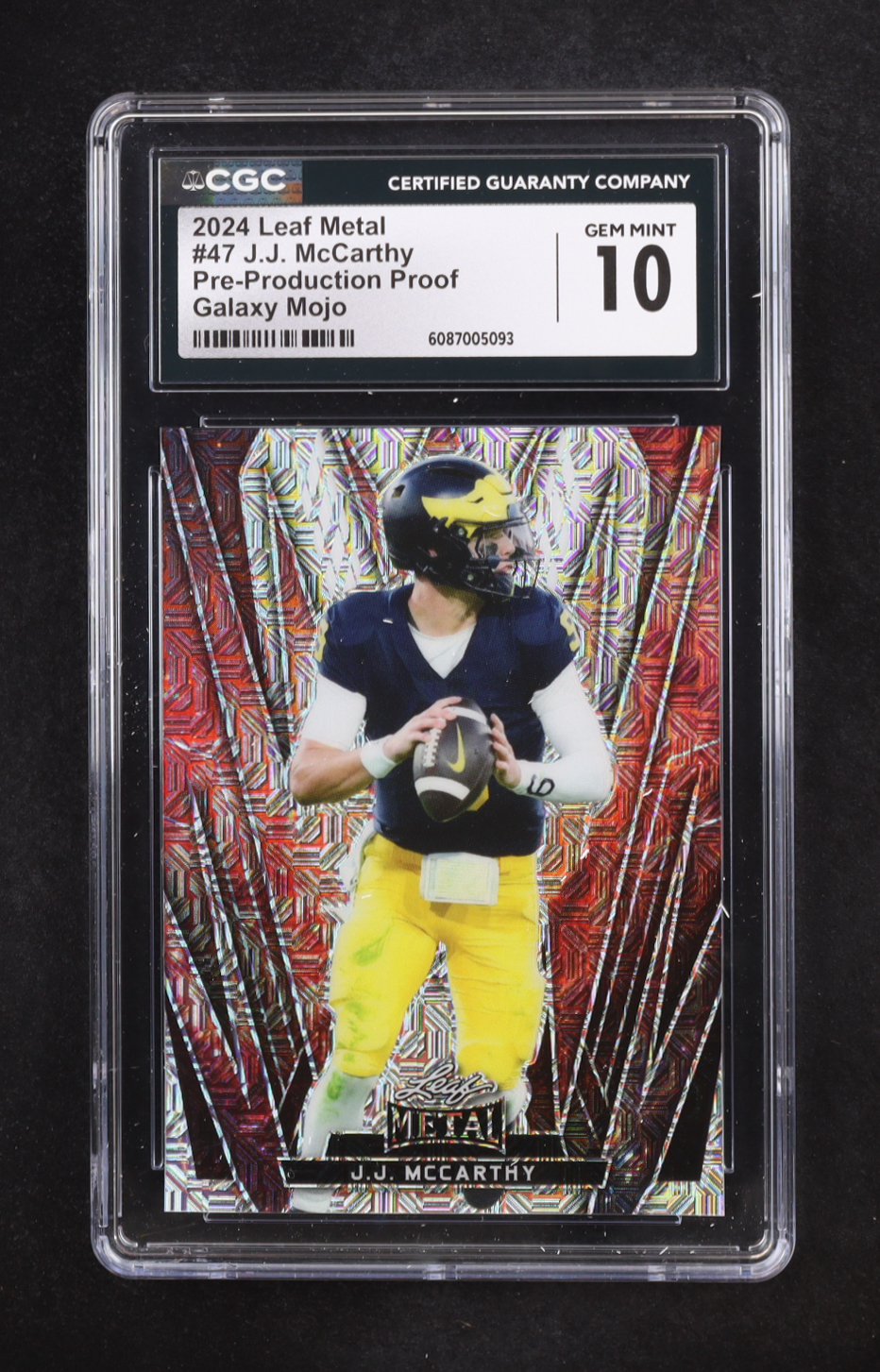 JJ McCarthy 2024 Leaf Metal Galaxy Mojo Pre-Production Proof #47 RC #1/1 (CGC 10)