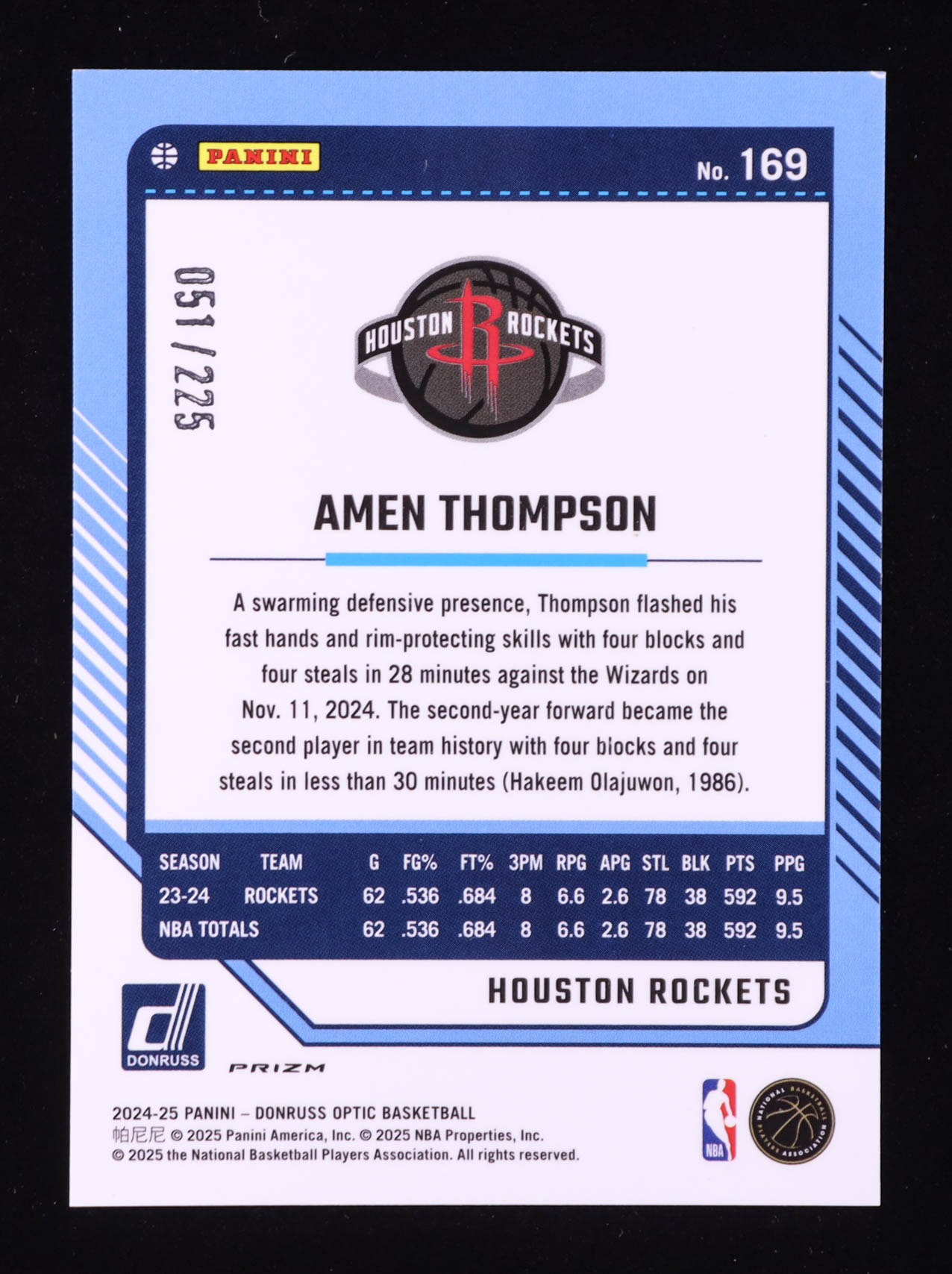 Amen Thompson 2024-25 Donruss Optic Aqua #169 #051/225