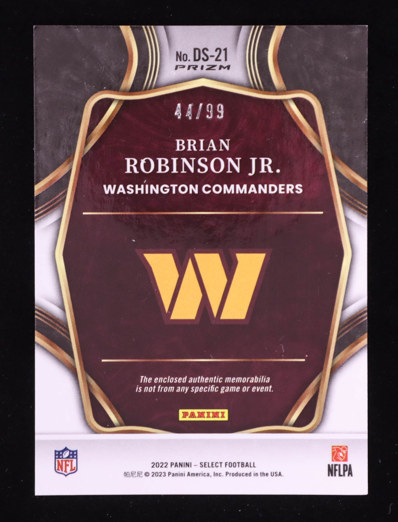 Brian Robinson Jr. 2022 Select Draft Selections Memorabilia Prizm #21 RC #44/99