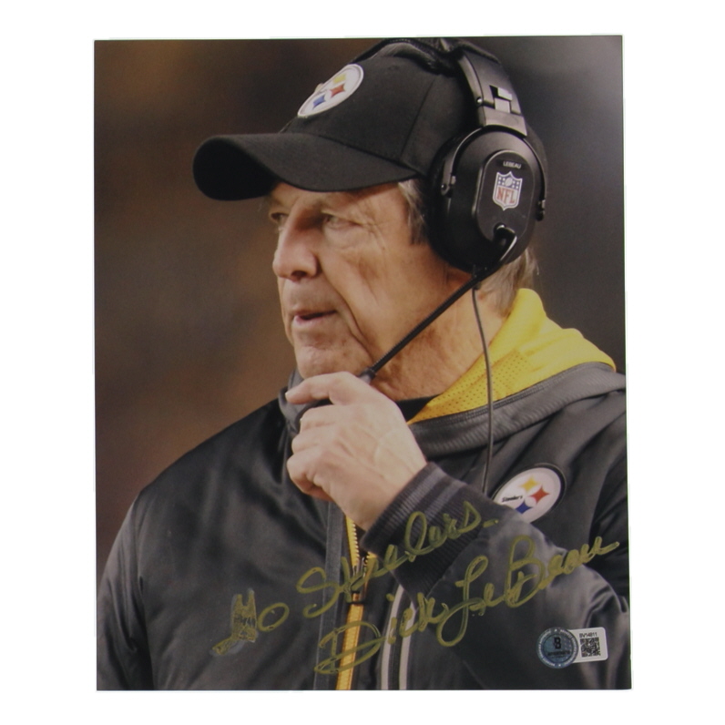 Photo measures 8" x 10" in size and has been hand-signed by Dick LeBeau. Please note, the inscription is smudged.