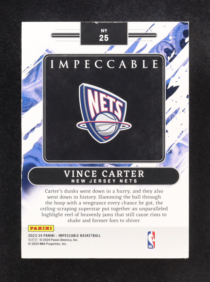 Vince Carter 2023-24 Panini Impeccable Silver NBA Logo Holo Gold #25 #05/10