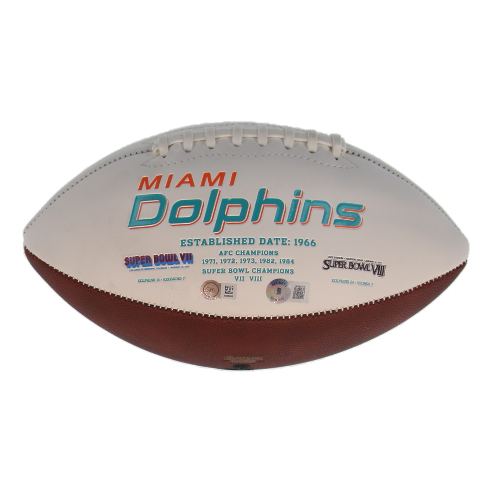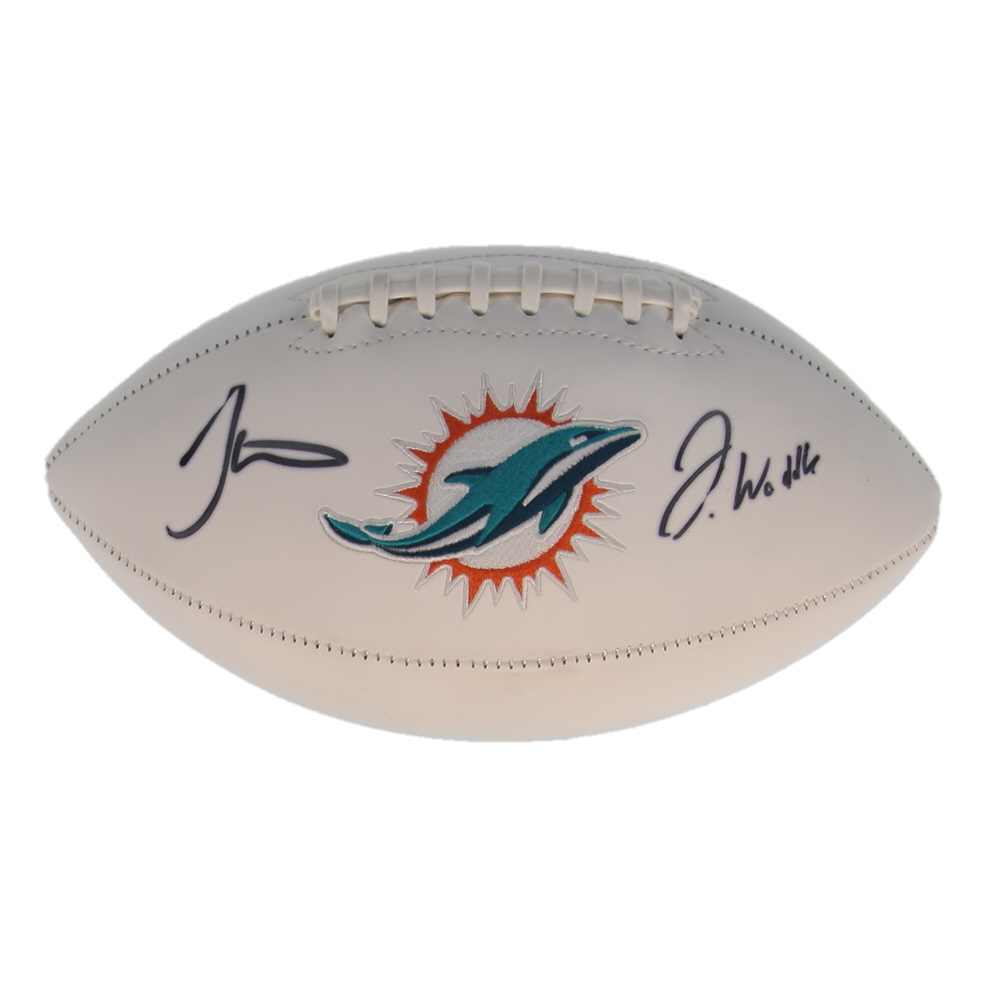 Miami Dolphins logo football has been hand-signed by Tyreek Hill and Jaylen Waddle.